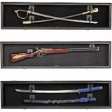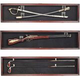 Versatile display case to hold a rifle shotgun, military saber, martial art sword, or golf club that is no more than 43" long. Dimension: 44.5"W X 11"H X 3.9"D (Outside), Interior: 43.5"W X 10"H X 3.1"D. Holds 1 to 2 clubs NO MORE than 43". This will not hold a wood or driver. Golf Clubs, Shotgun, Sword are NOT included.