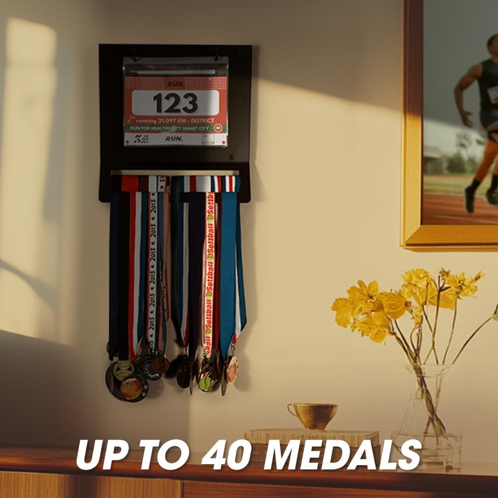 [Ultimate Display for Race Medals & Bibs] Proudly showcase your hard-earned race bibs and medals all in one place. Perfect for marathoners, triathletes, and running enthusiasts who want to cherish their achievements.