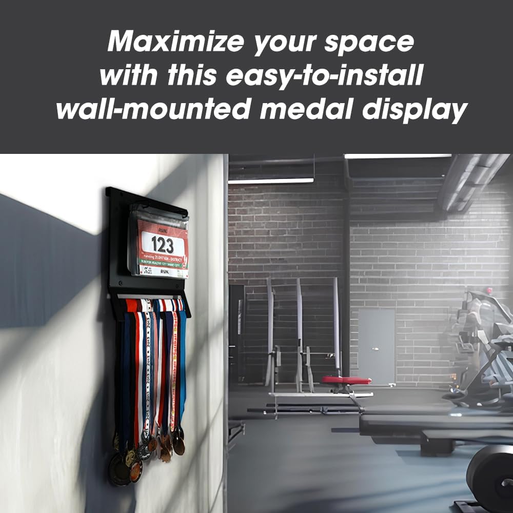 [Heavy-Duty, Long-Lasting Construction] Made from thick, durable metal, this display is built to last. Its robust design ensures it can securely hold your medals and bibs for years, offering reliable support without bending or warping over time.