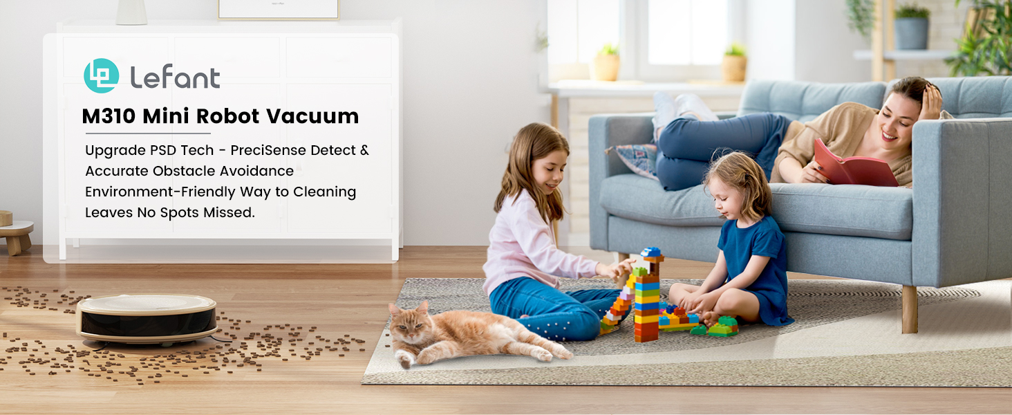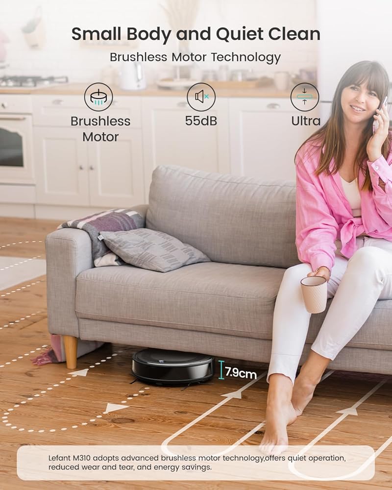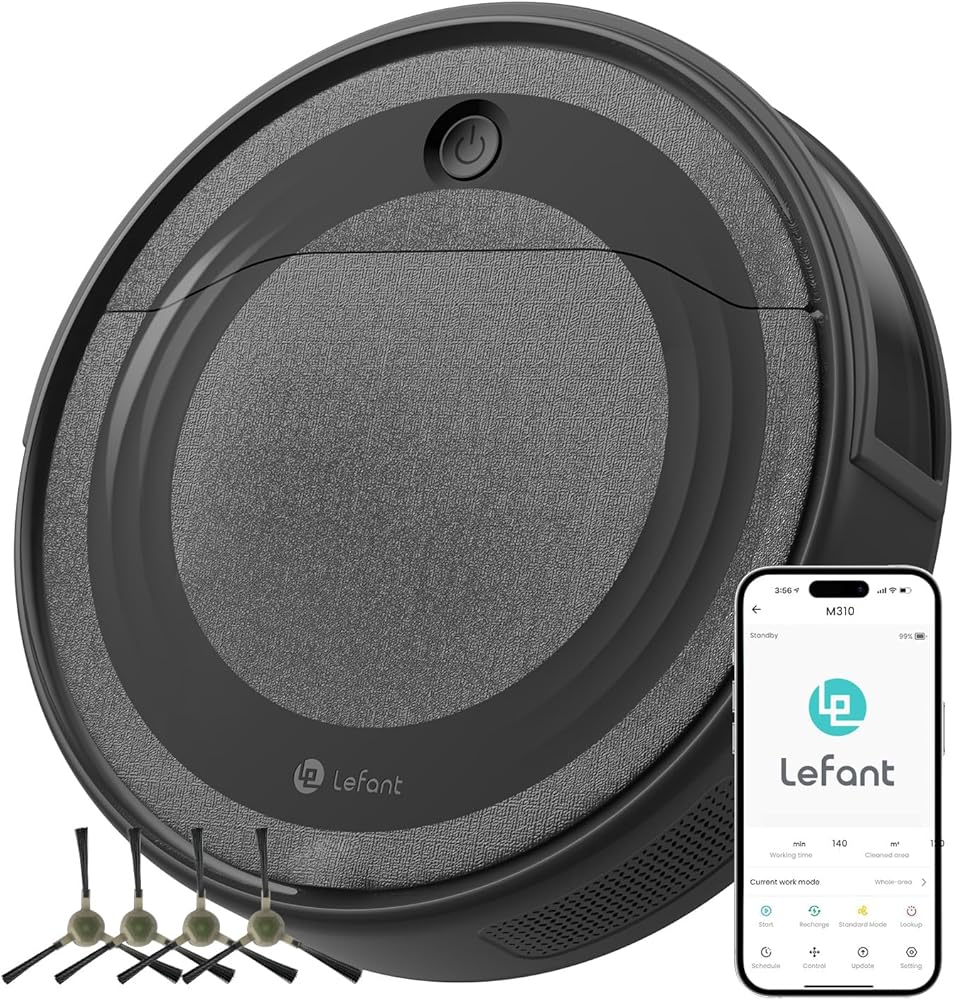 Slim Design & Freemove Tech 3.0: At just 2.99 inches tall, the M310 robotic vacuum easily cleans under beds, furniture, and hard-to-reach spaces; Lefant unique Freemove Tech 3.0 allows it to free itself if stuck, ensuring thorough and high-coverage cleaning throughout your home