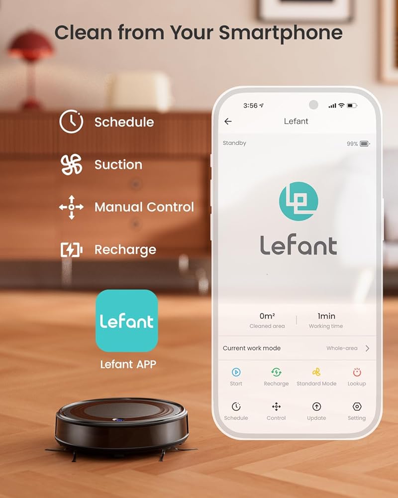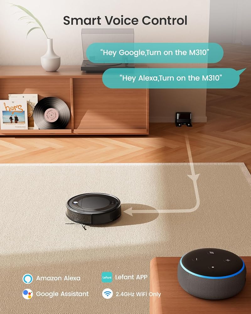 Smart App & Voice Control: Lefant M310 robot vacuum cleaner offers flexible management via the Lefant App; switch between 4 cleaning modes, schedule sessions, and adjust suction power; control with voice commands through Alexa or Google Assistant; NOTE: supports 2.4GHz Wi-Fi