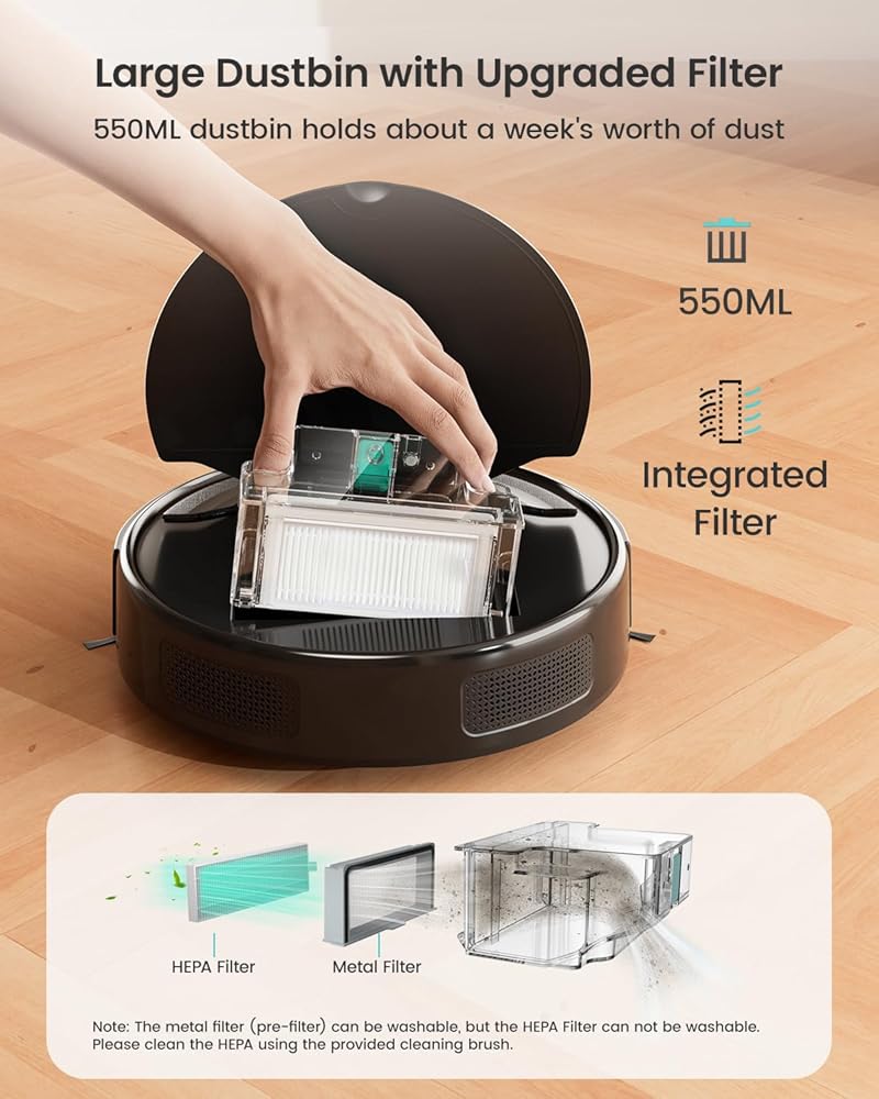Spacious Dustbin & HEPA Filter: Our Lefant M310 features a 550ml dustbin, reducing the need for frequent emptying; integrated HEPA filter, with metal pre-filter and HEPA filter, captures fine dust, pollen, and pet dander; ideal for allergy sufferers; remember to clean regularly