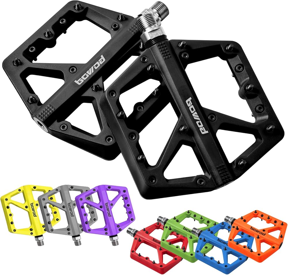 BOWOD Bike Pedals Mountain Bike Adult men,Downhill Bike pedals, MTN Bike Pedals, Quality BMX Pedals, Extra Wide Bike Pedals Mountain Bike Colored Pedals, Light MTB Pedals Large, Commuter Bike Pedals Lightweight, Ebike Pedals, Flat Pedals for Road Bike, Stud Bike Pedal Extenders 9/16" Wide Mountain Bike Pedals Clipless, Light Weight MTB Pedals Youth, Electric Bike Pedal Road Bike Flat Pedals,Glass Fiber-reinforced Nylon Composite Platform Pedals
