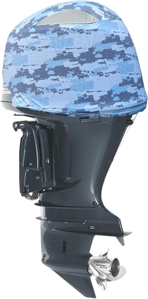 OUTERENVY specialized outboard motor covers are the most exciting new product in the outboard market today. The Blue Digital Camo cover is printed in full spectrum color and is completely breathable and remains installed while operating the engine in all conditions providing more than just added protection for your boat's motor, they look stunning as well! Instead of hiding your outboard in an old bulky style canvas cover, showcase those stylish lines and contours with an OUTERENVY Custom Fit Breathable Vented Motor Cover in Sizes to Fit Yamaha, Mercury and Suzuki Outboards.