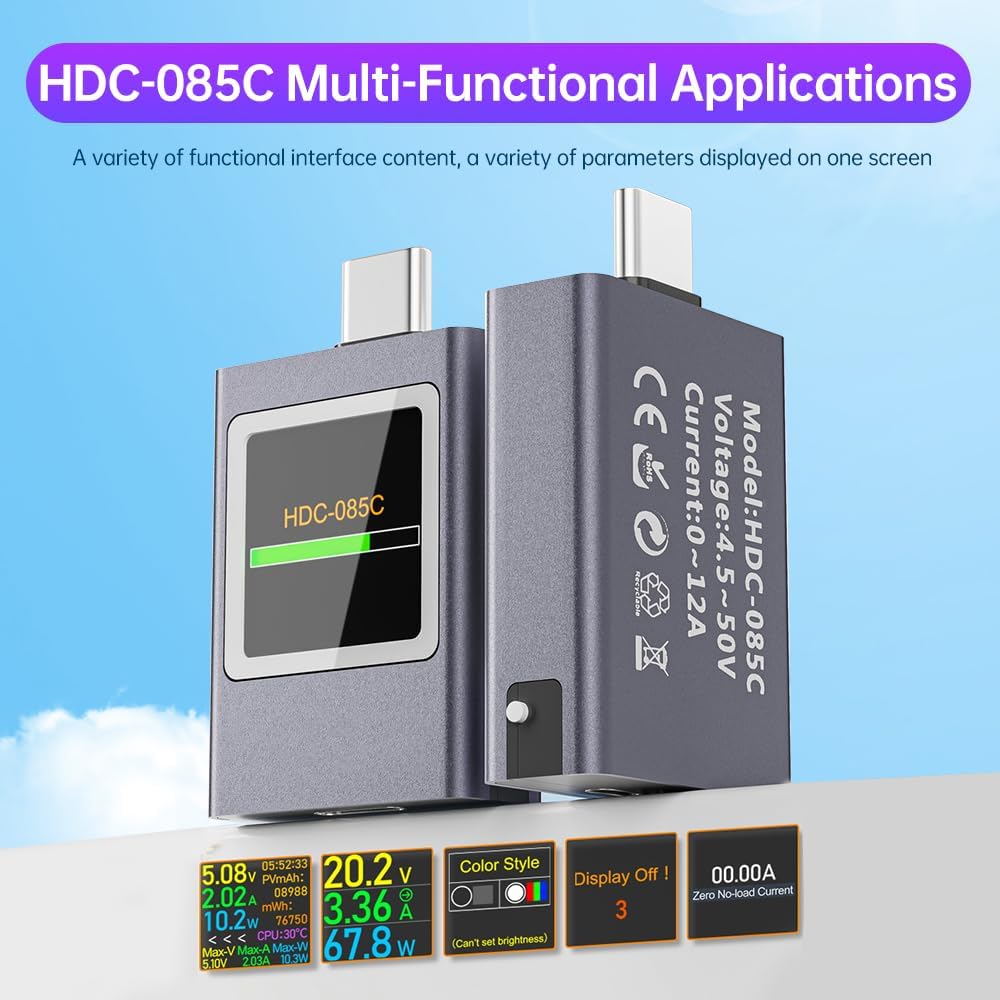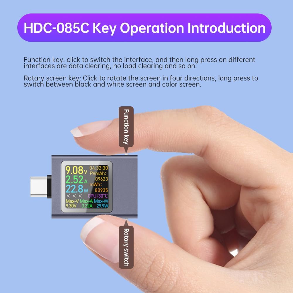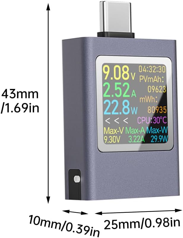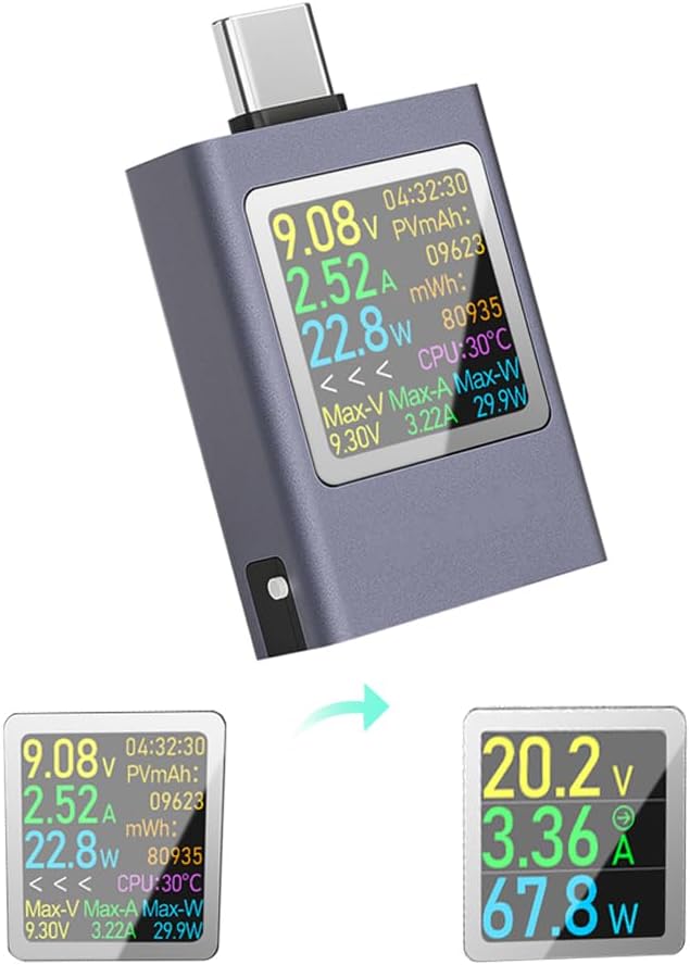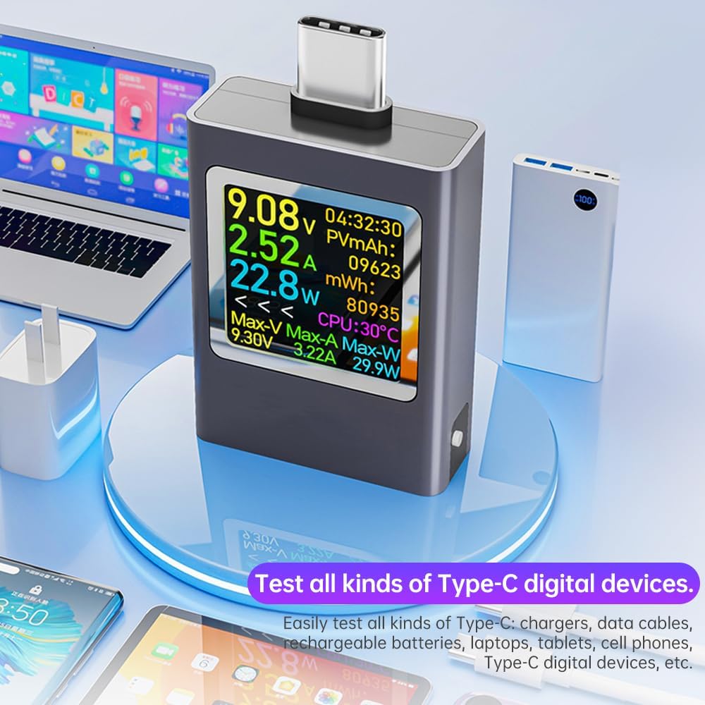 【Multifunctional USB C Power Meter】Usb c tester Designed to detect the charging status and process of USB-C devices. Supports PD3.1 48V, PD2.0, PD3.0, PPS, OC2.0, QC3.0, FCP, SCPAFC, PE, DASH VOOC, SuperV00C and more protocols. Support to detect charging performance of USB-C chargers, cables, power banks, wireless chargers, laptops, smartphones, and other USB-C devices. With a measurement accuracy comparable to professional-grade instruments at ±0.1%, it is an essential tool for testing USB-C ports.