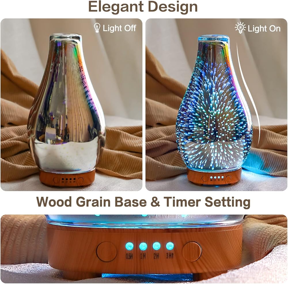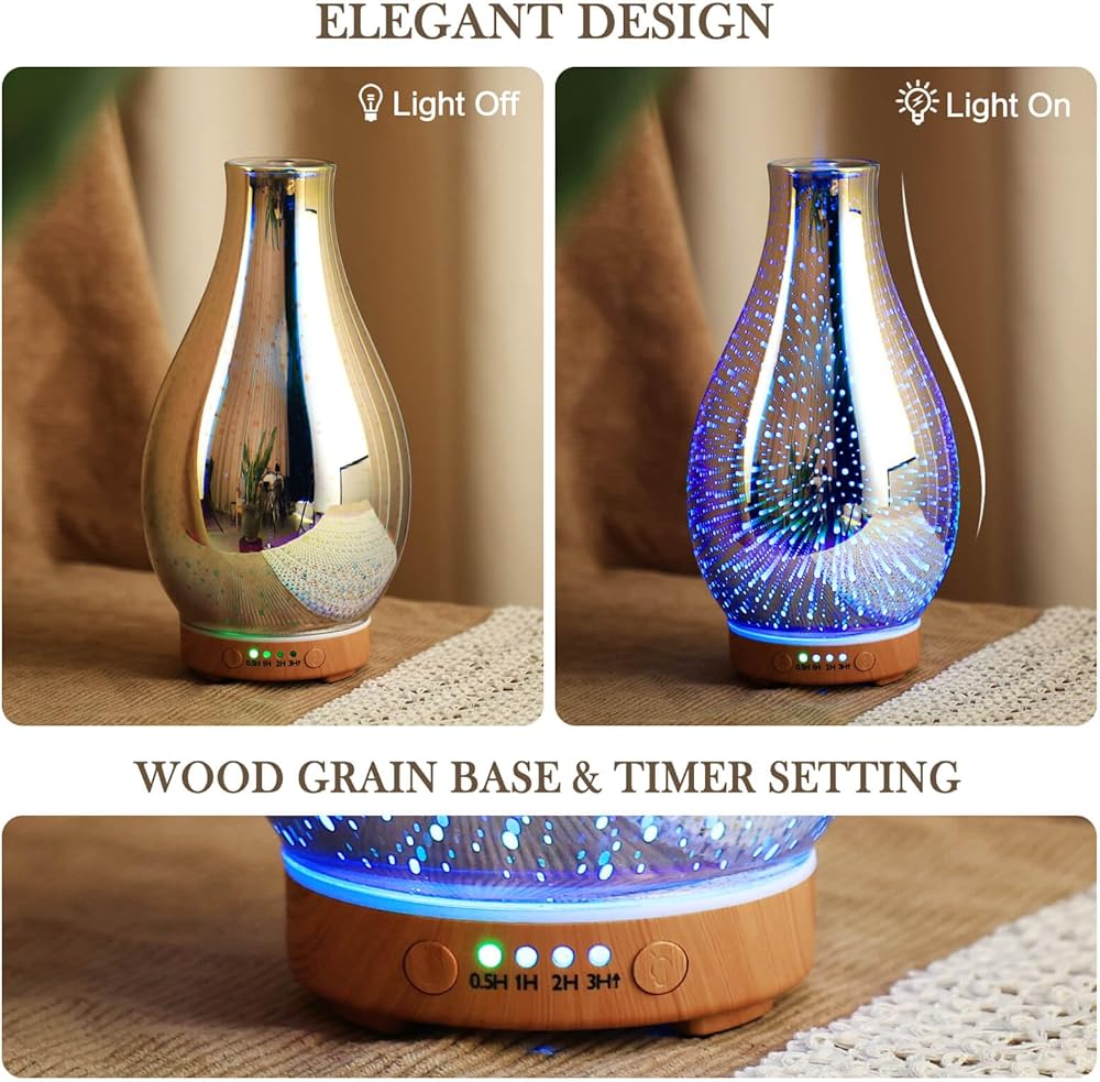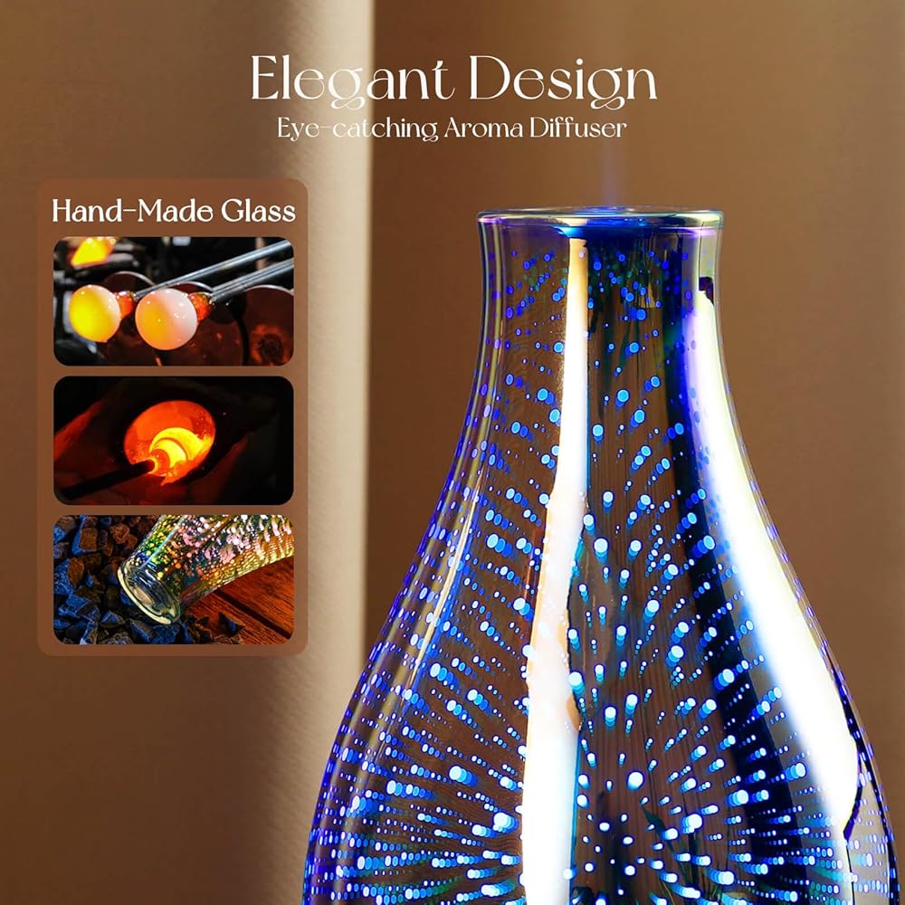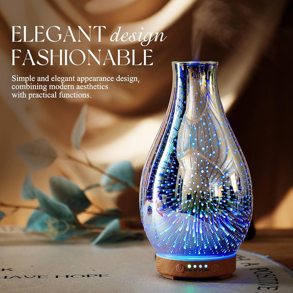 Porseme Essential Oil Diffuser 3D Glass Aromatherapy Ultrasonic Humidifier Cool Mist, Auto Shut-Off, Timer Setting, BPA Free for Home Office Hotel Yoga Gym Leisure SPA Gift 100ml