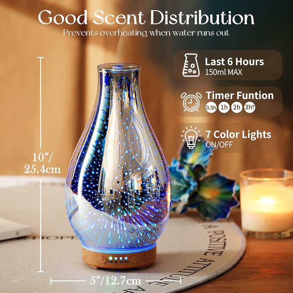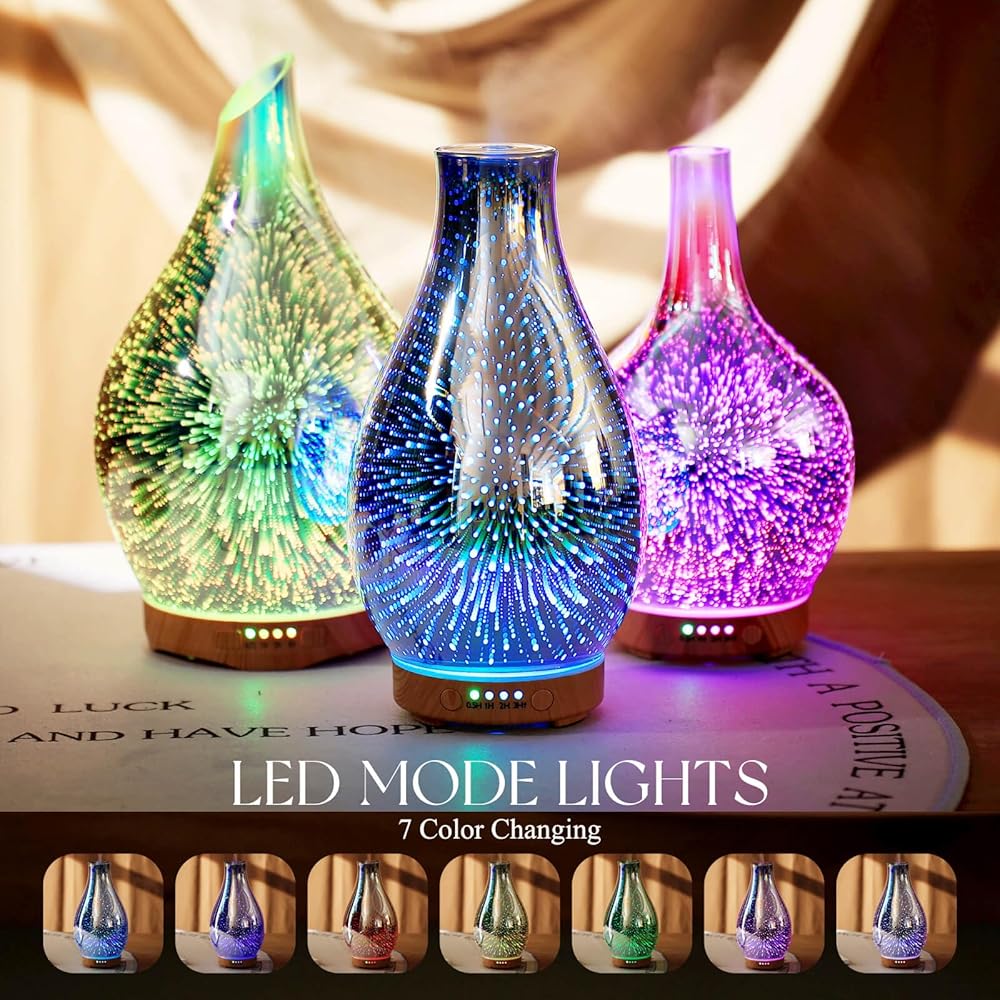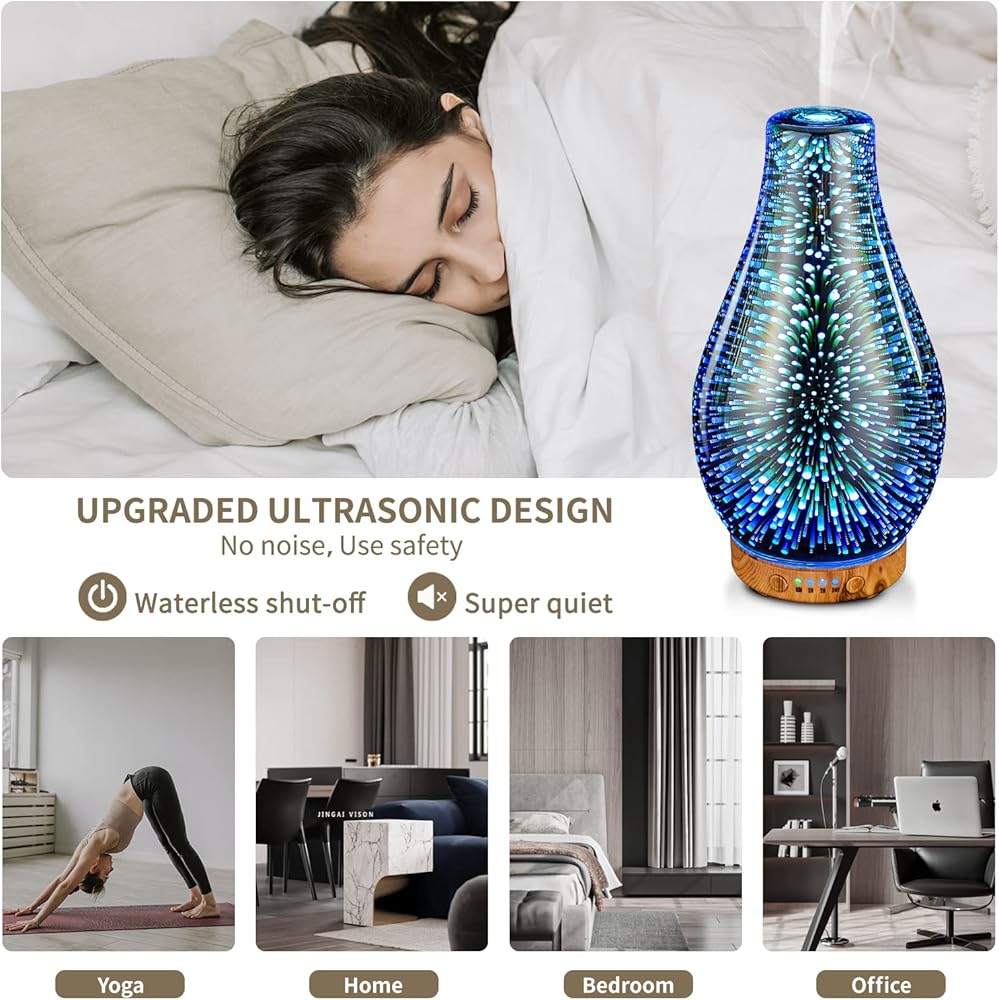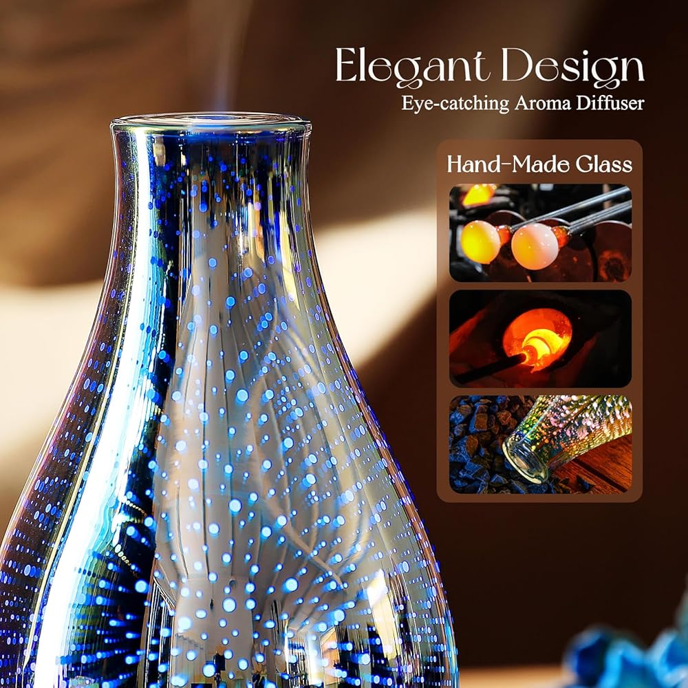 Porseme Essential Oil Diffuser 3D Glass Aromatherapy Ultrasonic Humidifier Cool Mist, Auto Shut-Off, Timer Setting, BPA Free for Home Office Hotel Yoga Gym Leisure SPA Gift 100ml