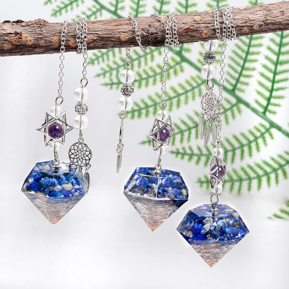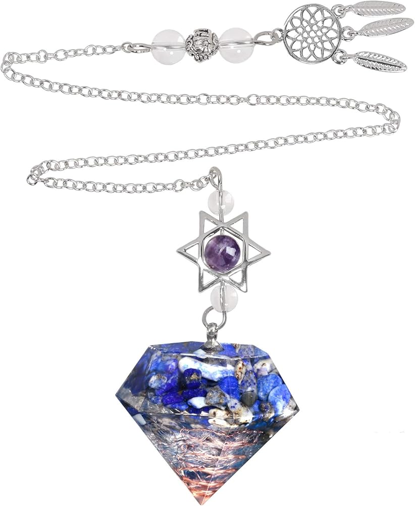 Unique Design: A copper coil is placed at the bottom of the diamond-shaped resin mold and then filled with high-quality crystal stone chips. The whole pendulum has a more accurate dowsing and divination ability. The Star of David decorated with a amethyst bead, which connects the main stone to the chain. At the end of the chain, it is the high light- dream catcher pendant.