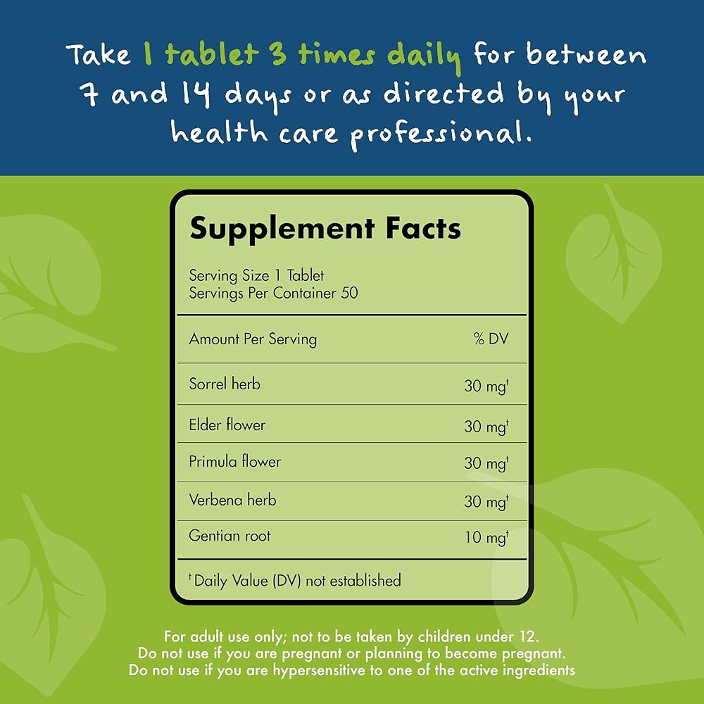 SUGGESTED USE - Comes in tablet form with a recommended use of one tablet, three times a day, to be taken at the onset of symptoms for a duration of 7-14 days.