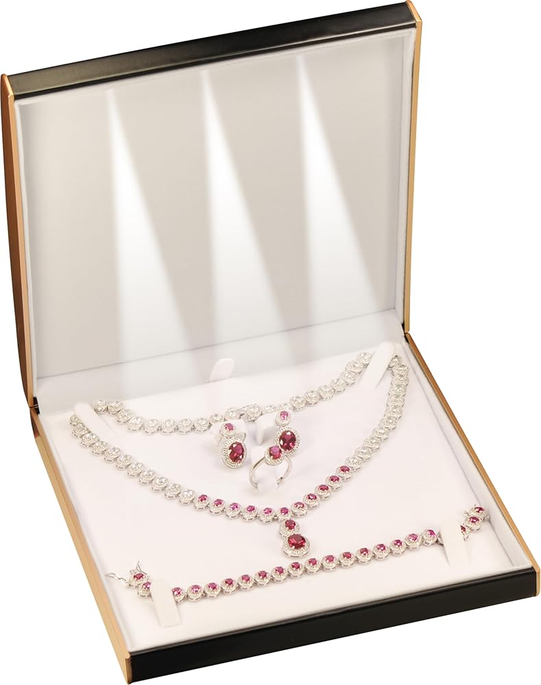 THREE LED LIGHTS: This LED big jewelry set gift box is equipped THREE LED lights, which will make your special jewelry bright and shinny and will make your wedding engagement jewelry sets gifts look luxury and brings a glowing and sparkling looking..
