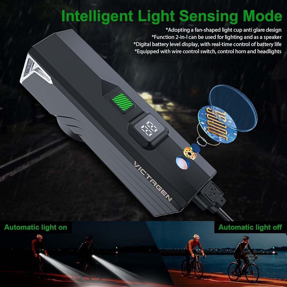 🚴🚴🚴【Light Sensing & Side Lights Mode】The bike lights for night riding add environmental light source induction mode, help you free up your hands and save the bike lights power. Bicycle headlights side light mode can effectively attract the attention of surrounding crowds or vehicles, ensuring your safe riding
