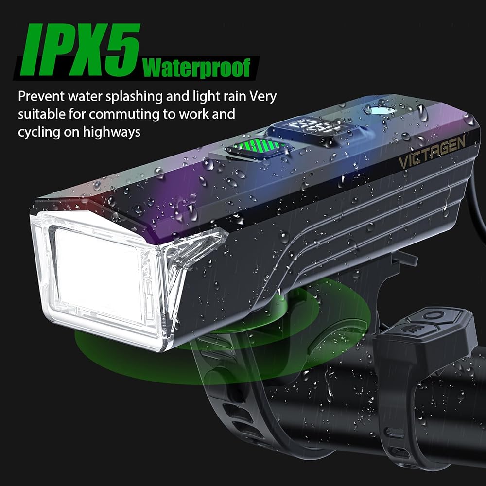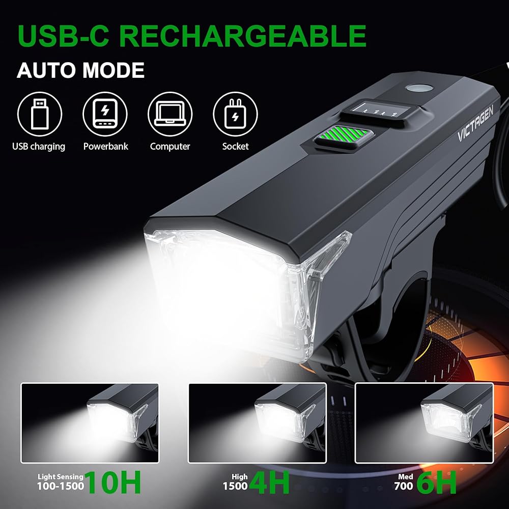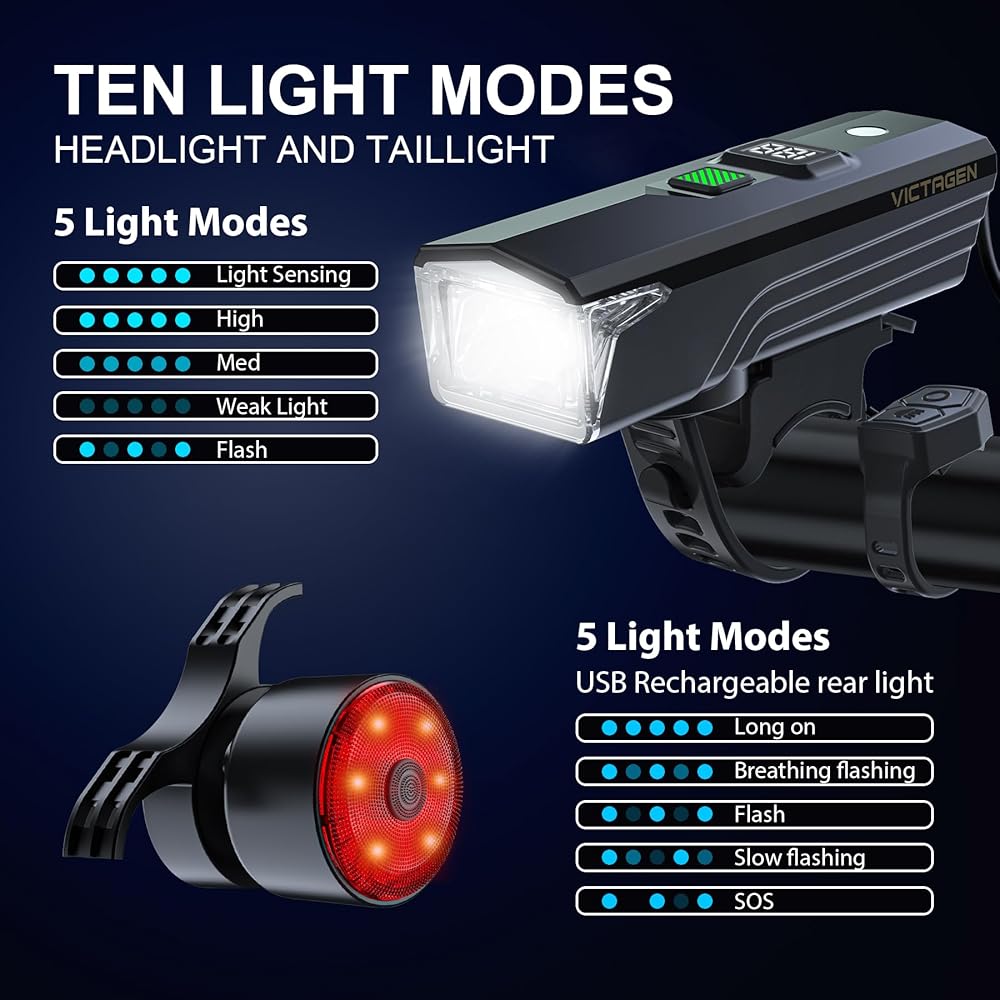 Victagen Ultra Bright USB Rechargeable Bike Light Set, Powerful Bicycle Front Headlight and Back Taillight, 5 Light Modes, for Men Women Kids Road Mountain Cycling