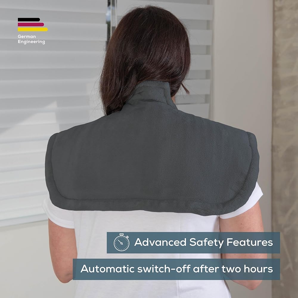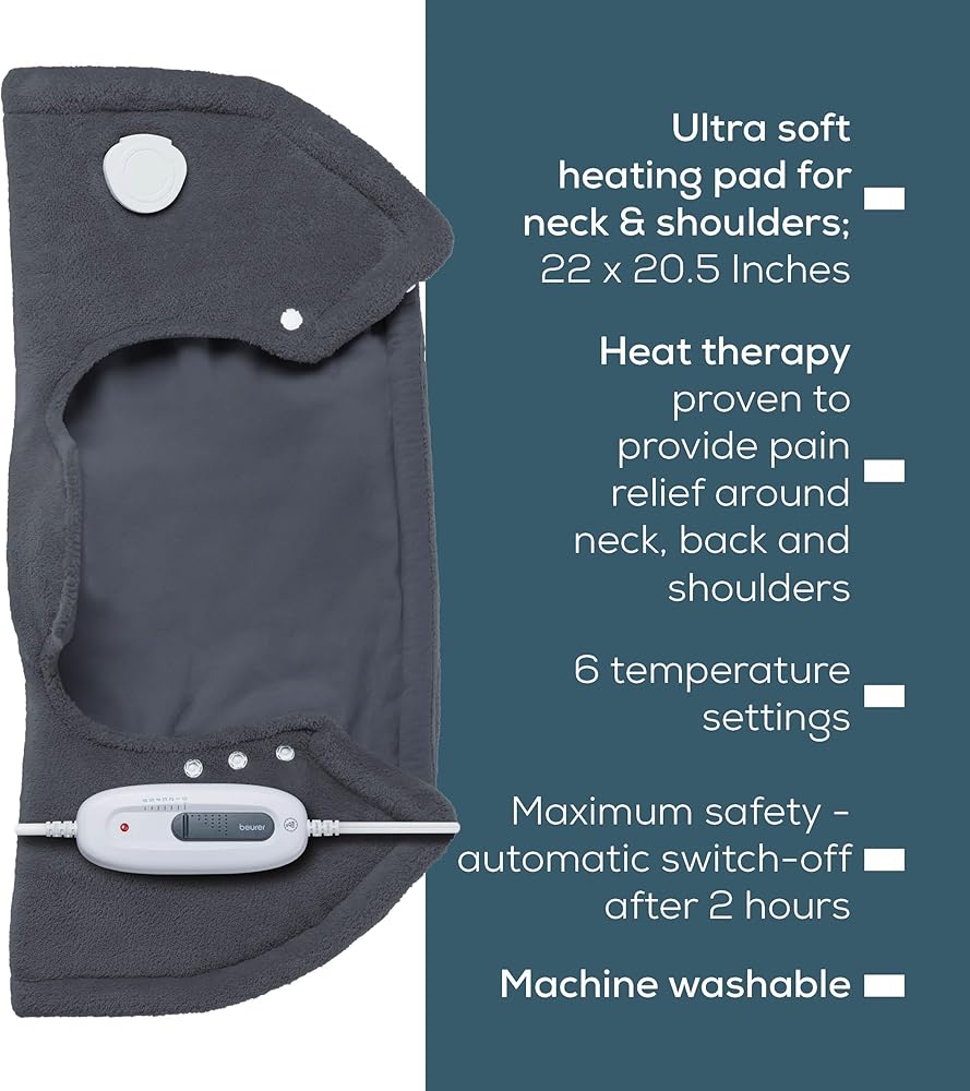 Beurer UHP54 Shoulder Heating Pad with Extra Soft Fabric, Fast Heating (107-141°F), 6 Temperature Settings, Auto Shut-Off, 22" x 20.5", Machine Washable