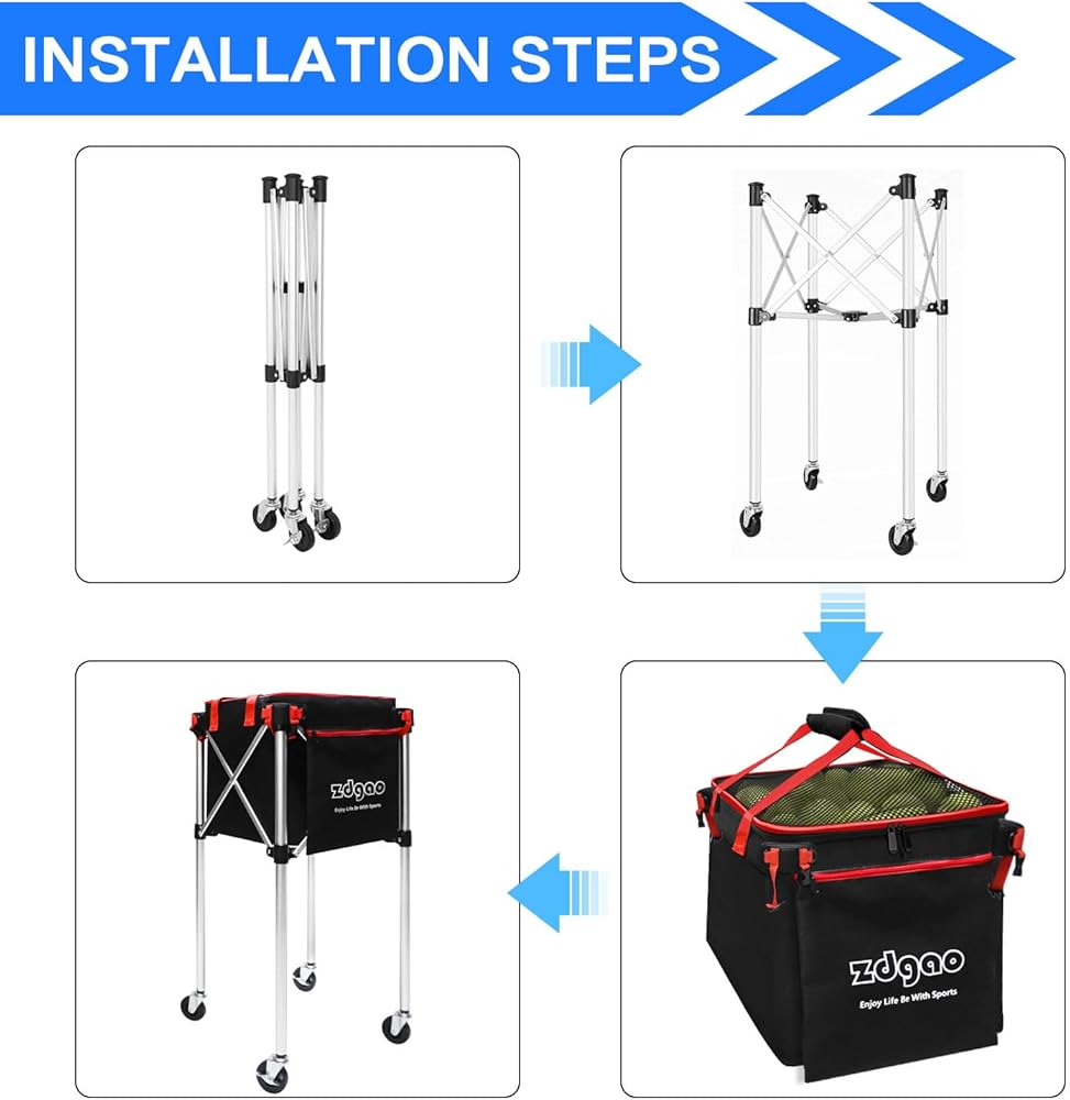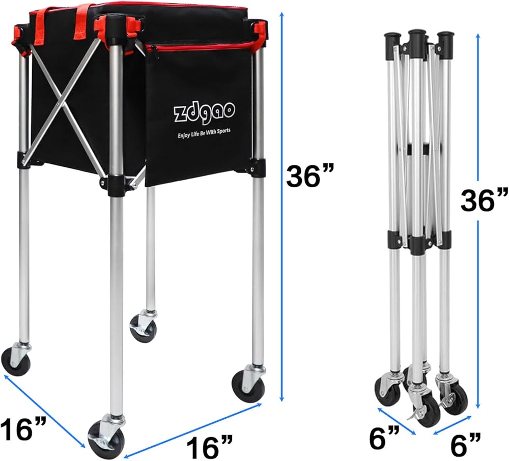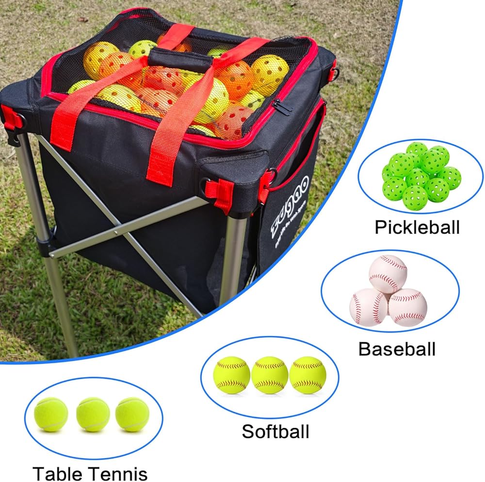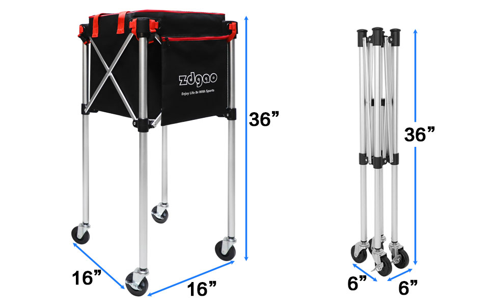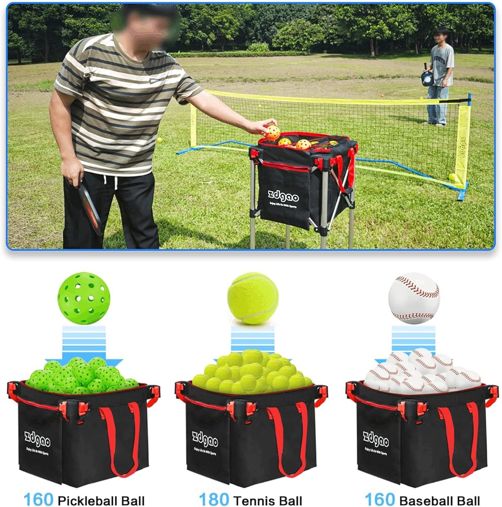 LARGE CAPACITY: Zdgao tennis ball cart with a large capacity bag can hold up to 180 tennis balls/160 pickleballs. The side pocket can hold your phones, pickleball paddles/tennis paddles and so on. The zipper design won't let your ball fall out