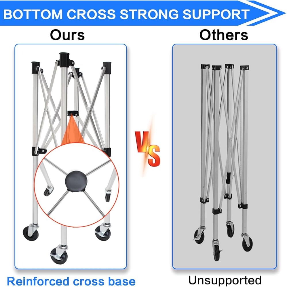 LIGHTWEIGHT AND FOLDABLE DESIGN: This portable tennis ball hopper with wheels makes moving from court to court a breeze, freeing up your hands and shoulders. The frame of this ball cart is easy to fold and portable, no assembly required. It is lightweight, sturdy and stable