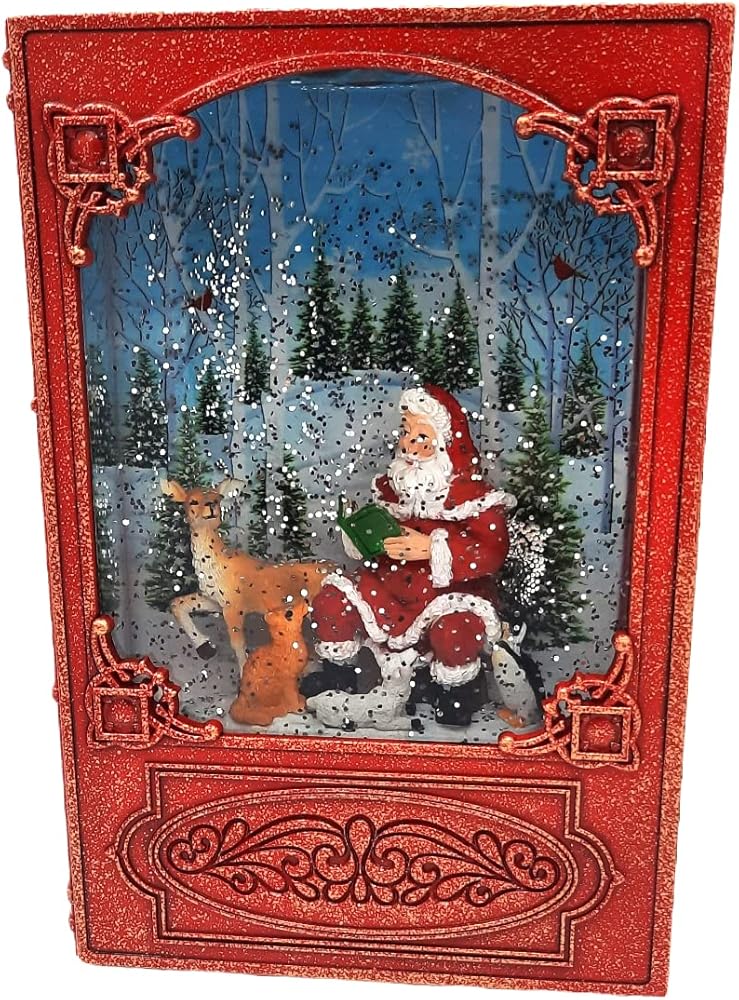 - Lighted Christmas water book lantern featuring Santa with animal friends