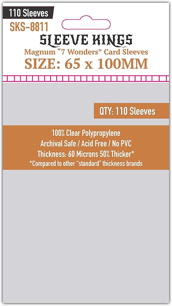 Sleeve Kings Standard Card Sleeves – 110 Count, Clear 60 Micron Thickness, Large Size (65 x 100 mm), Compatible with 7 Wonders & More – SKU: SKS-8811