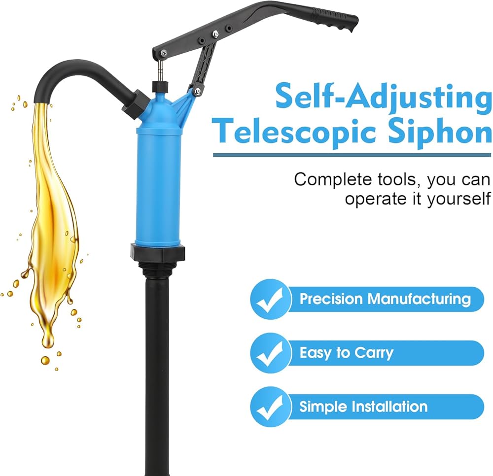 Adjustable Design: Our Barrel Drum Pump is designed with an adjustable telescopic siphon that can reach the bottom of deep buckets and makes it easier and more convenient for you to handle and use.