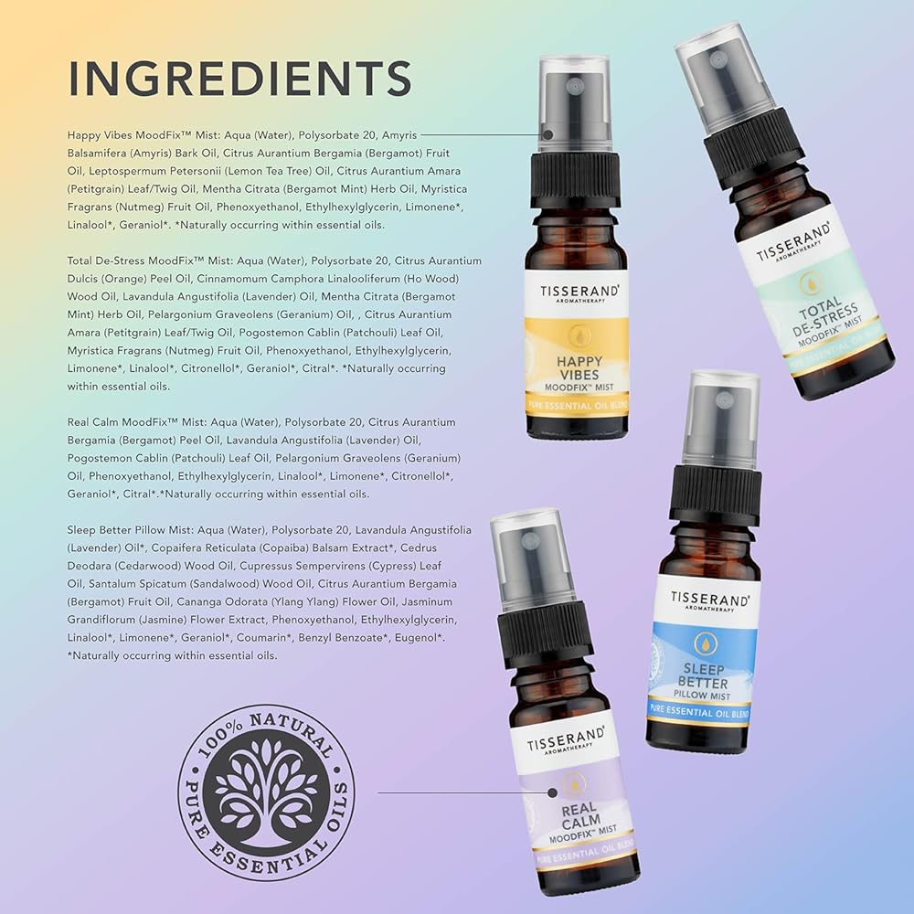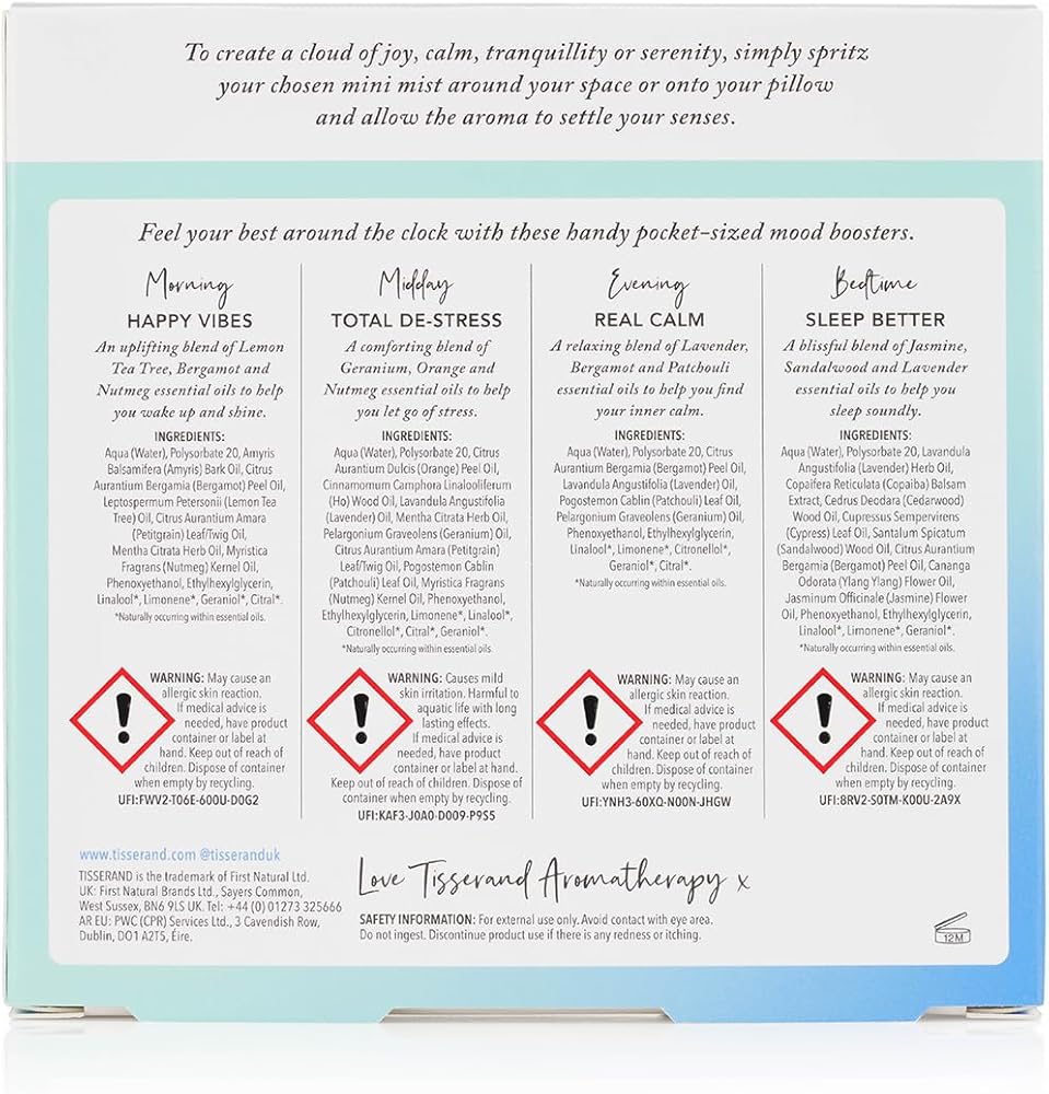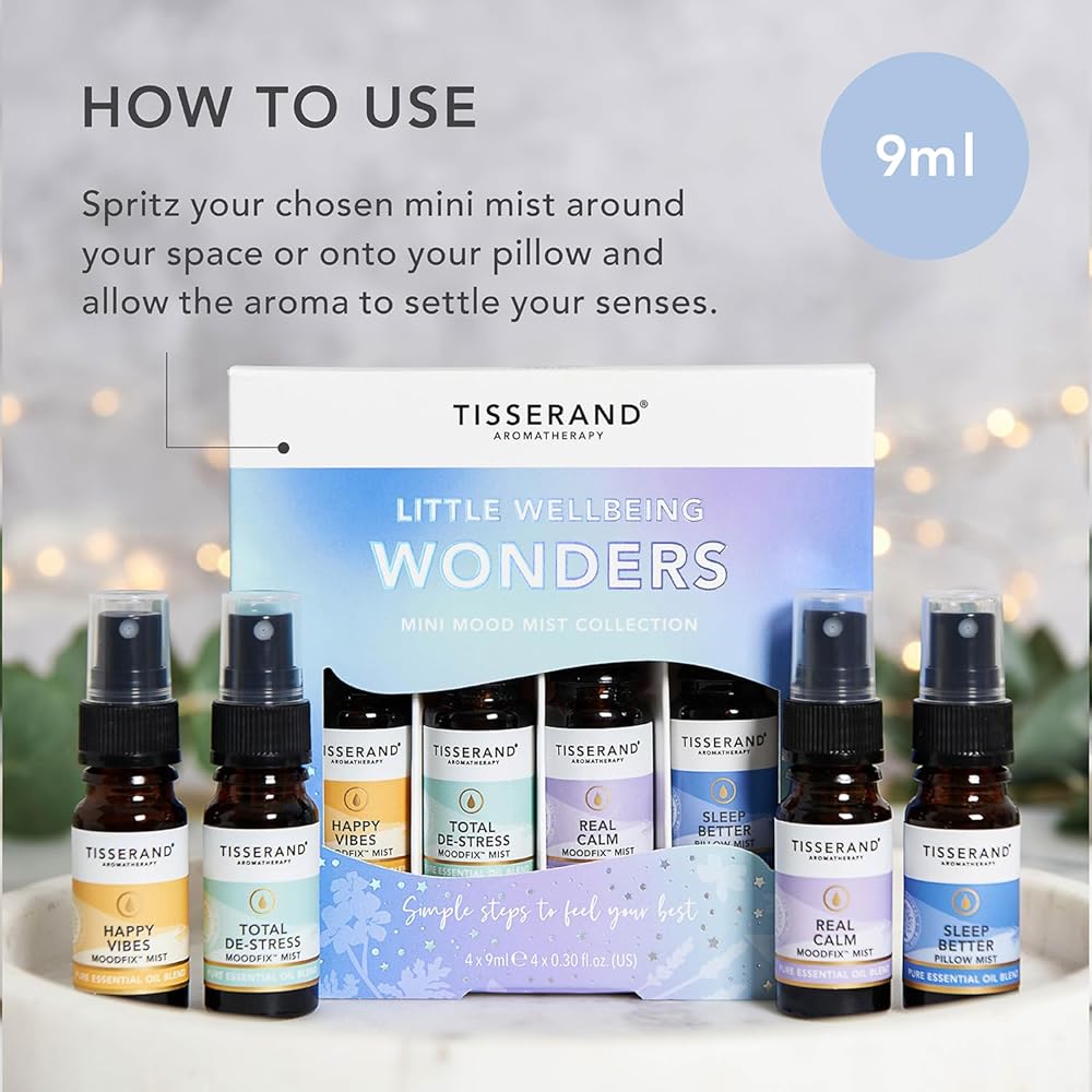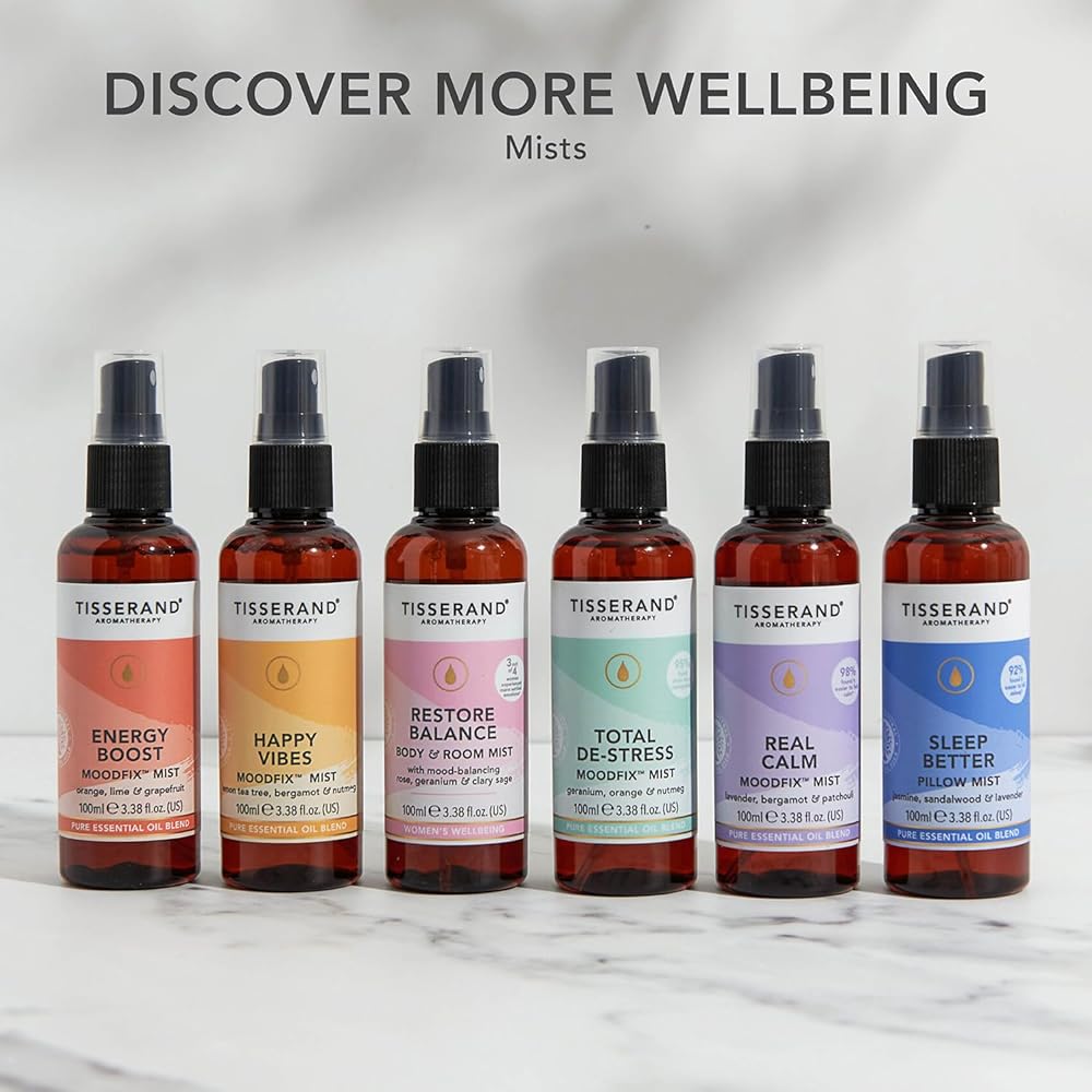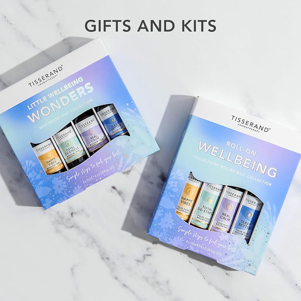Experience the pure essence of nature's best with the Tisserand Roll-On Wellbeing Collection. This gift set combines the balancing and restorative properties of organic essential oils to inspire positivity, release stress and restore inner calm. Whether you need a mood lift or a peaceful night's sleep, this set has you covered. Diffuse these essential oils in your home or office to create an ambience that can help you sleep, release stress, or inspire positivity. They are also suitable for use with humidifiers, spreading their calming and restorative effects throughout your space.