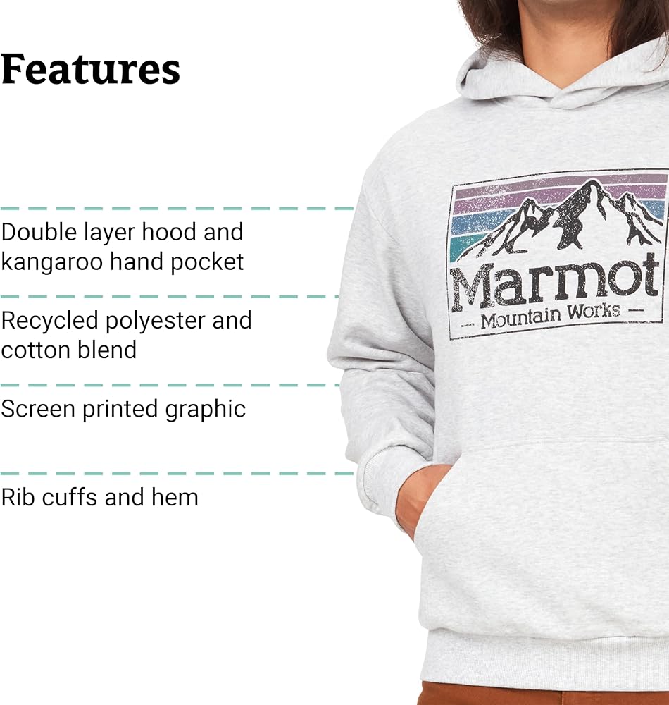 This soft, midweight blend of cotton and recycled polyester is easy and comfortable, featuring a gradient Marmot graphic.