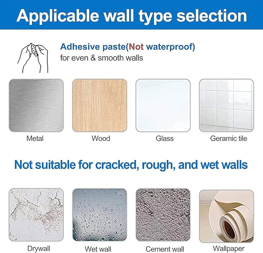 Suitable for hard and smooth surfaces such as wood, glass, tiles, walls, plastic trim and metal coatings. Cannot be used on wallpaper walls or walls that have fallen off. Please wait 24 hours after pasting before hanging items to ensure stronger adhesion.