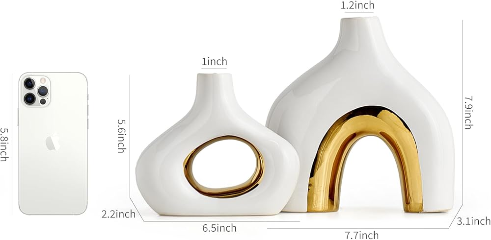 UNIQUE DONUT CERAMIC VASE SET - You will definitely be attracted by our unique colors and beautiful donut ceramic vase set. Unlike traditional vases, our ceramic vase set of 2 feature a very eye-catching two-tone black and gold color matching design, a shaped shape that makes the vase unique and stylish, and a hollow round design that adds a Nordic luxury modern minimalist look to your home decor.