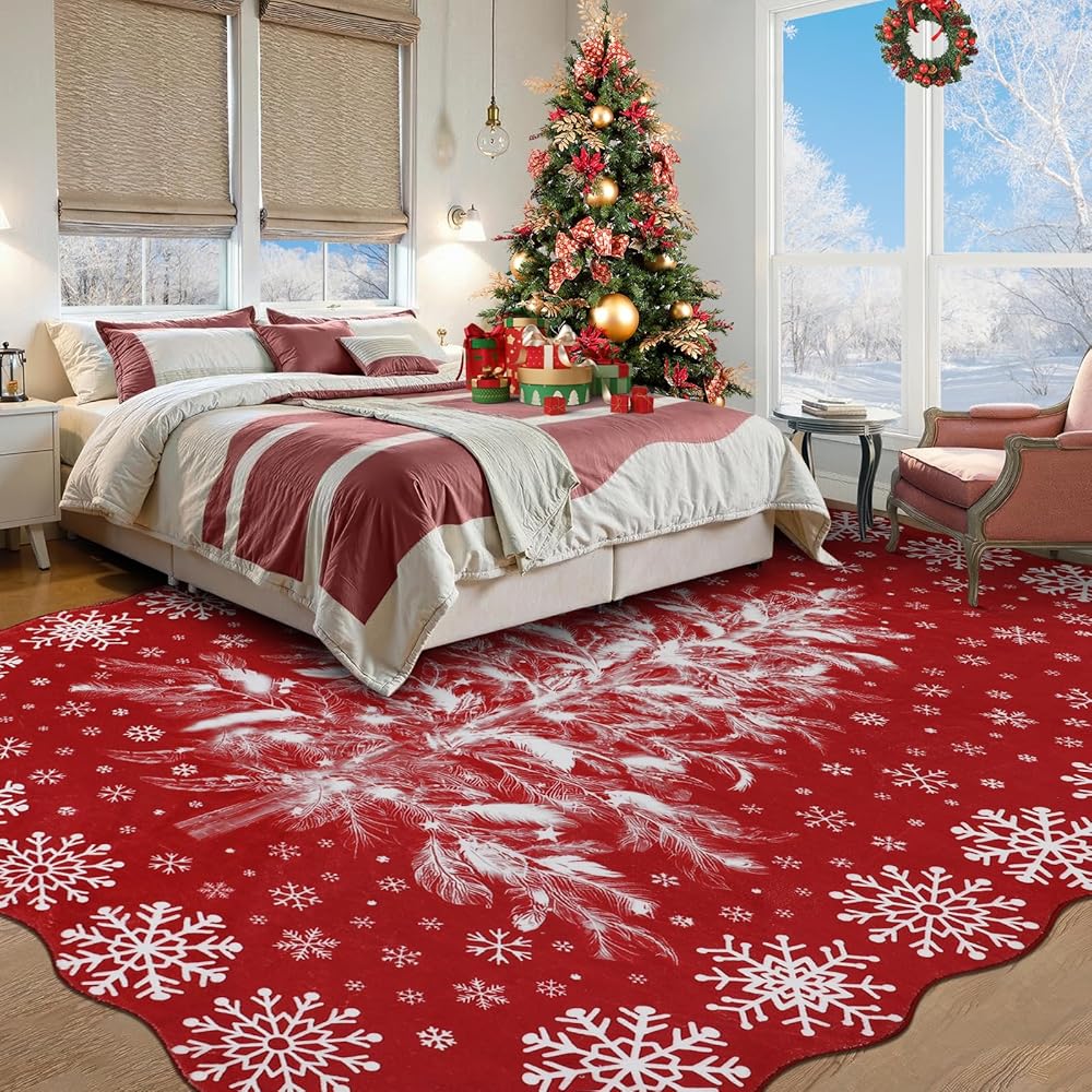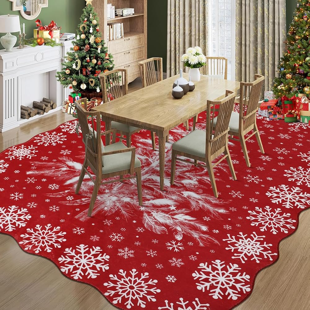 Printed&Washable Rugs:Homcomoda large area rugs are designed with printed patterns,which are durable and can be machine washed or hand washed multiple times without fading,maintaining their beauty even after washing.Cleaning is simple,just throw this washable rugs into the washing machine and it will be quickly cleaned,making the Christmas area rugs look brand new every day