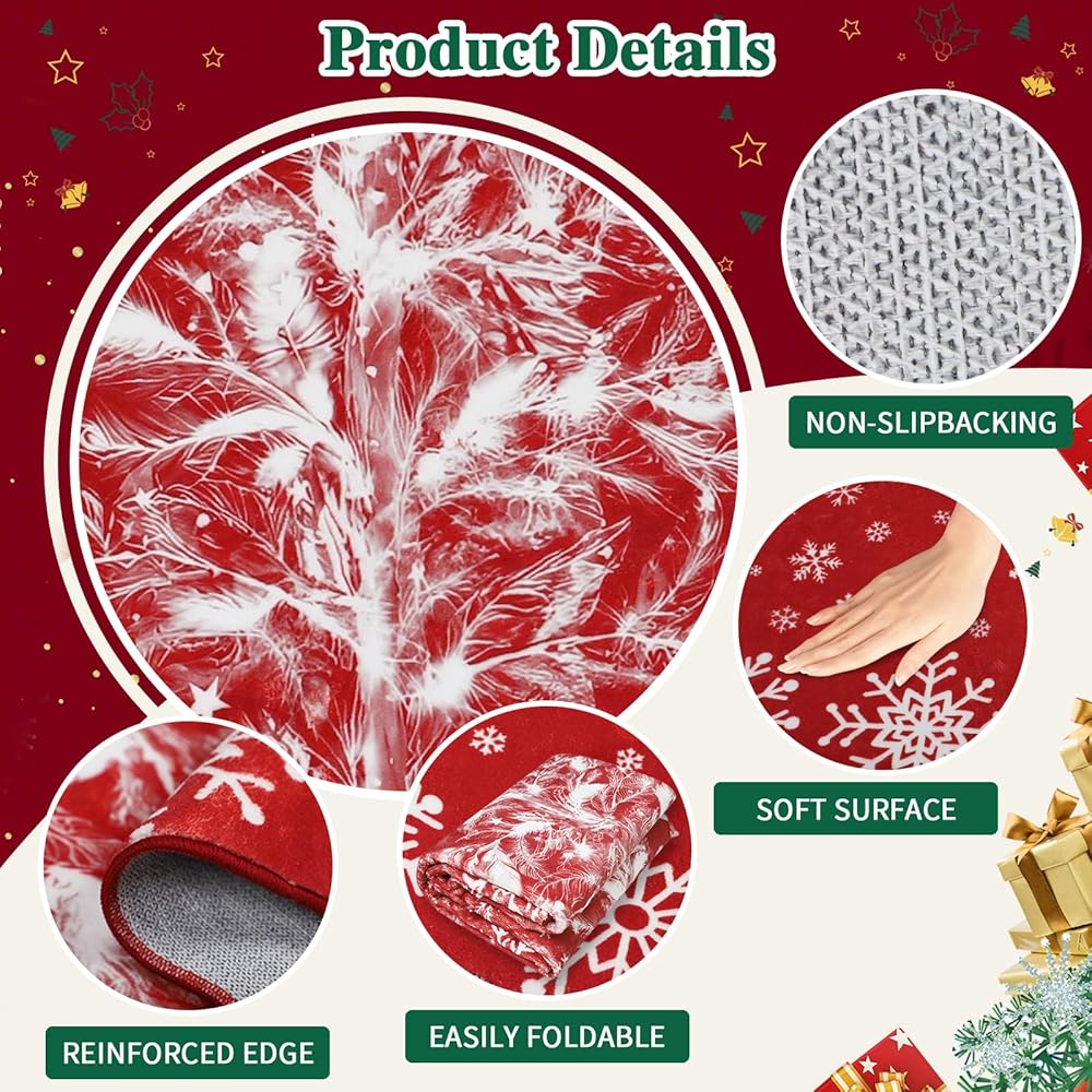 Lightweight Non Slip Area Rugs:Our lightweight area rug is very convenience,which making it effortless to pick up and move,whether it's for floor cleaning or rearranging rooms according to decorative styles.One of the outstanding features of this christmas rugs is non-slip TPE backing.There is no need of pad under the rug.It eliminates concerns about slipping or tripping on the carpet, which is friendly for children and pets.