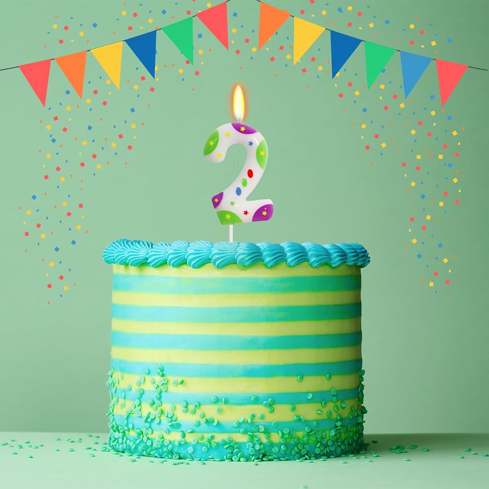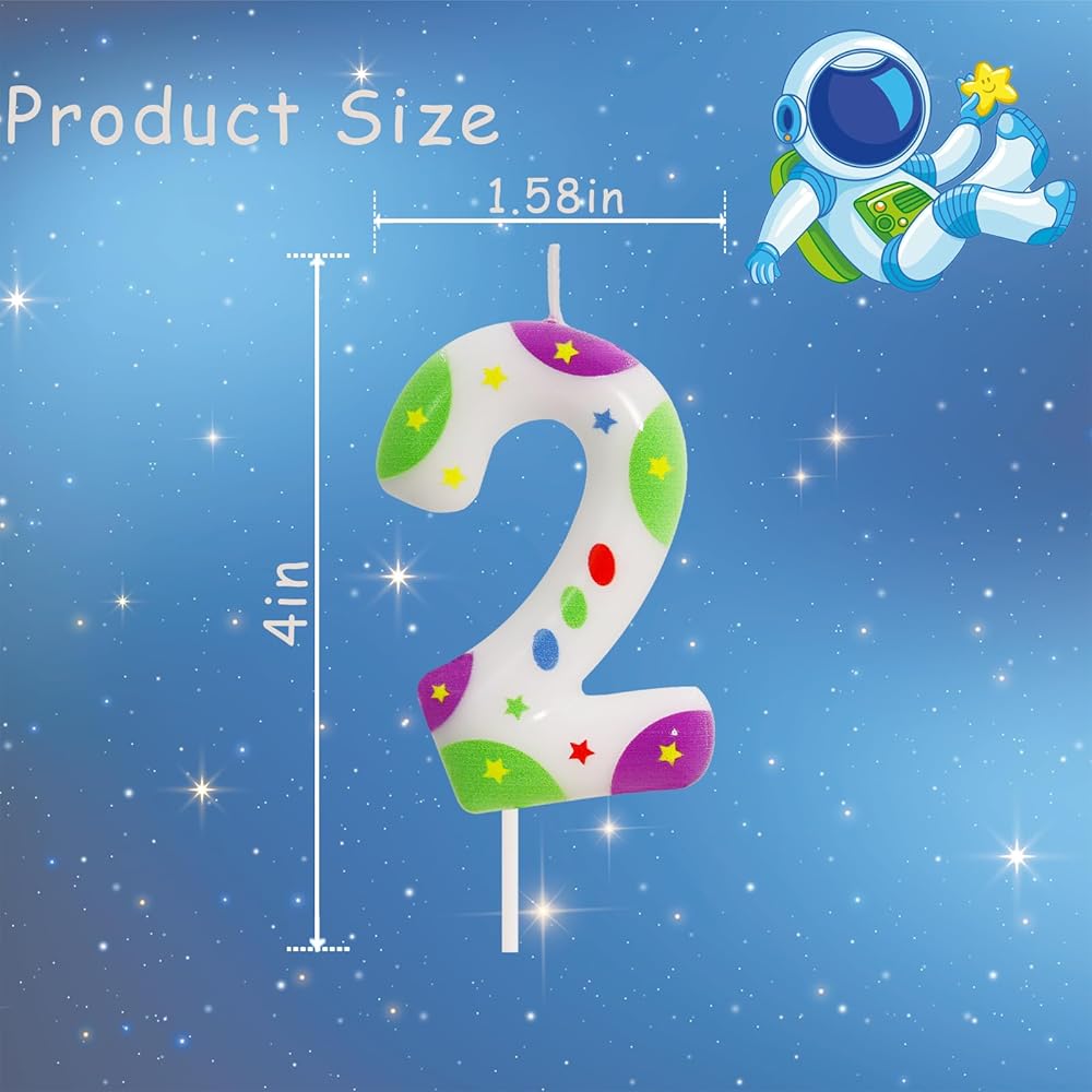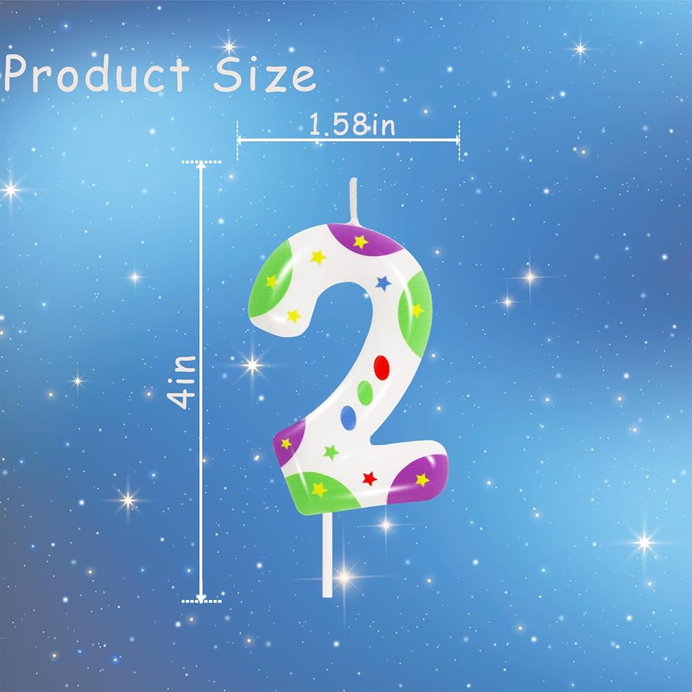 Toy Themed Cartoon Story Number 2 Candle Cake Topper Two Infinity and Beyond Birthday Decorations Astronaut Robot Toy Cartoon Birthday Party Supplies (Number 2)