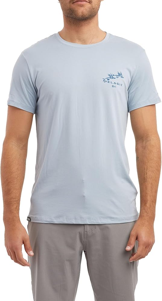 The perfect performance tee for hot and; humid days on or off the water featuring an ultra soft fabric and moisture wicking breathability. Featuring original Gyotaku art created by Dwight Hwang, this product pays homage to the sea through the traditional method of Japanese fish printing. Learn more about the collection HERE. View more of Dwight's work and the Gyotaku process HERE. 50+ UPF Protection Ultra Soft Fabric Quick Dry Moisture Wicking Breathability 4-Way Stretch Recycled Fabric Material: 94% Recycled Polyester 6% Spandex Model Measurements: Wearing: L Height: 6'5" / Waist: 34