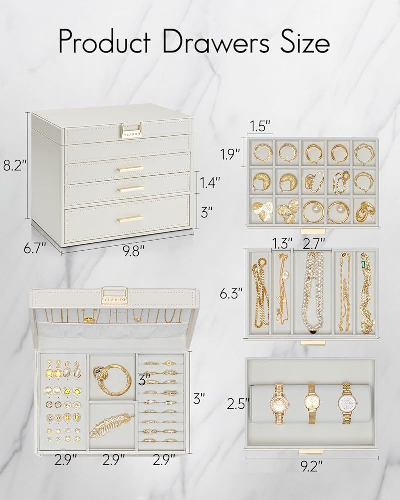 SIMPLE, MODERN AND STYLISH - Large jewelry organizer has a simple and natural look that suits most styles. With a beautiful appearance, it is not only a practical jewelry box, but also a wonderful decoration for your room.