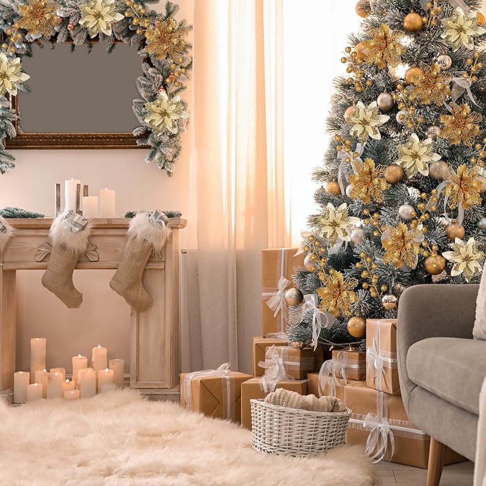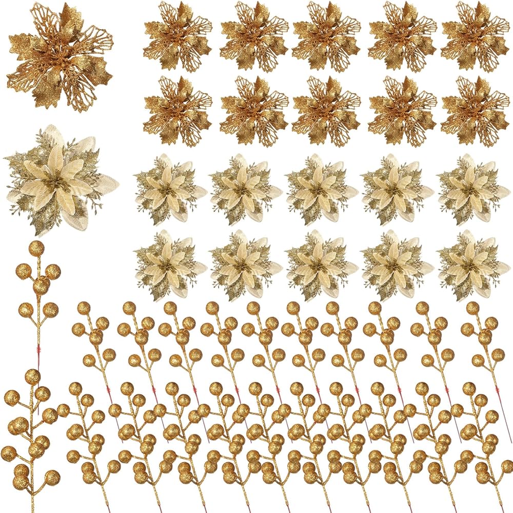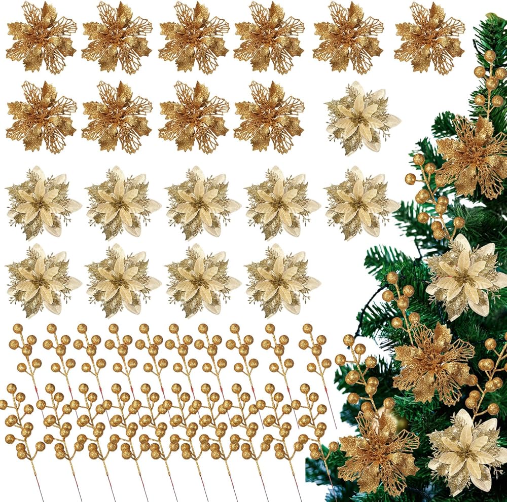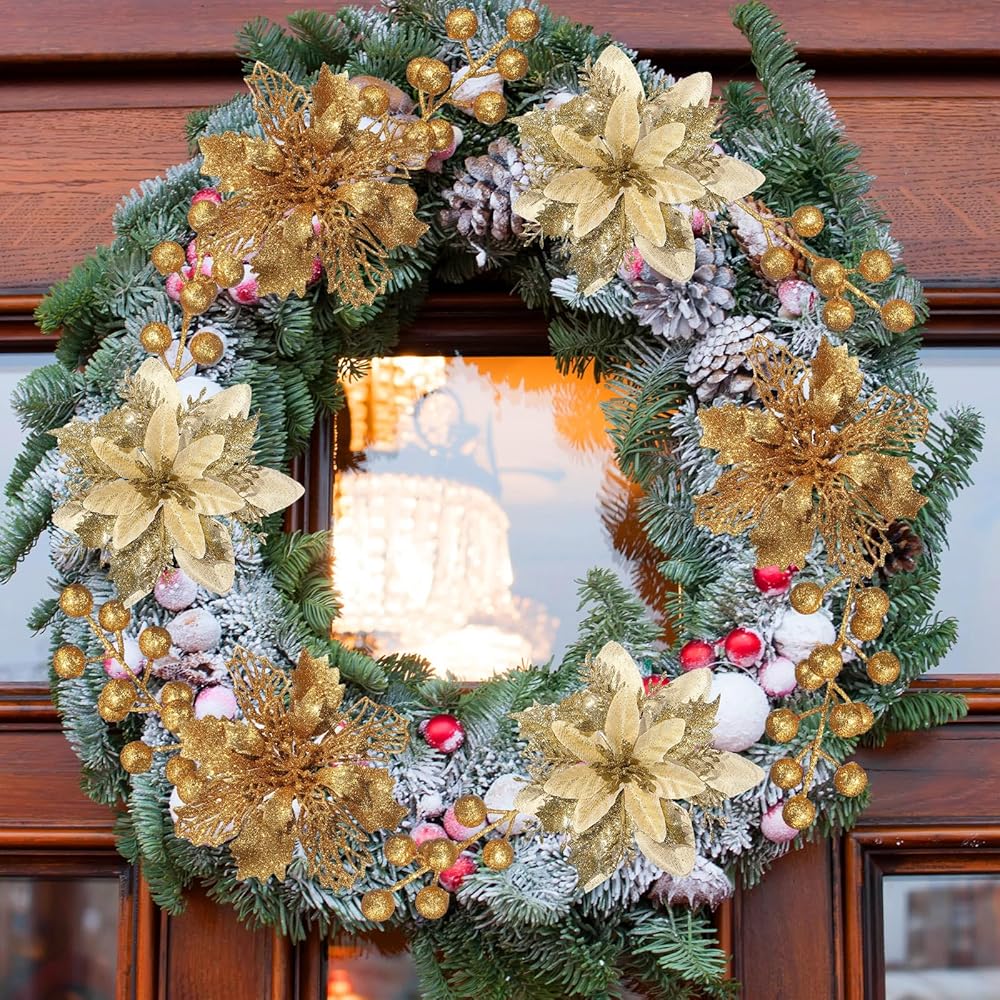 These berry stems for Christmas tree and artificial poinsettia flowers are an ideal choice for enhancing your Christmas decorations. Whether it's the Christmas tree, dining table or a mantel, these beautiful, large sized decorations will give any setting a festive and appealing look.