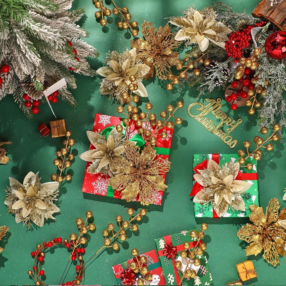 Our Christmas tree berry stems flower ornaments for Christmas tree and are not just for decorating your space. They can also be applied for decorating gifts. Adding these glittery flowers and berries to your gift packing increases the charm of your present, making it more personal and special for the receiver.