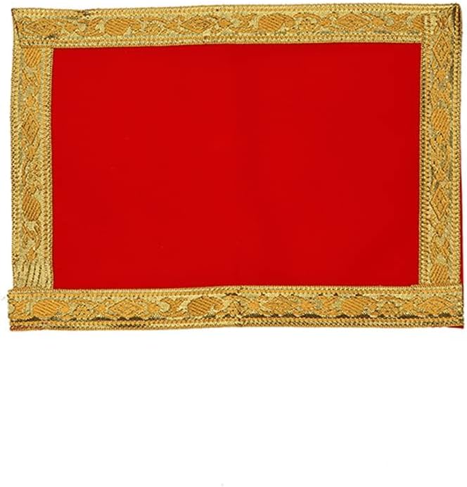 Set of 5 Velvet Mat Aasan Pooja Puja Cloth for Laxmi Ganesh for Multipurpose Indian Traditional Cultural Decoration Item Article Pooja Home Decor(Size:-12 Inches X 8 Inches)(Red)