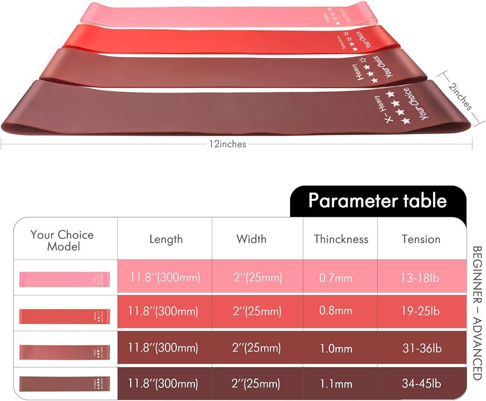 💪 HIGH END EXERCISE BANDS - Our Loop bands are made of 100% natural latex, non-toxic and eco-friendly, which is durable and skin-friendly. Come in 4 different resistance levels (Please refer the NO.2 picture - Parameter table to the tension levels of each tension band). Light and medium bands are tailored for beginners, heavy and x-heavy thick bands are great for more intermediate and advanced strength training. Use single leg bands or combine multiple bands to find your ideal resistance level