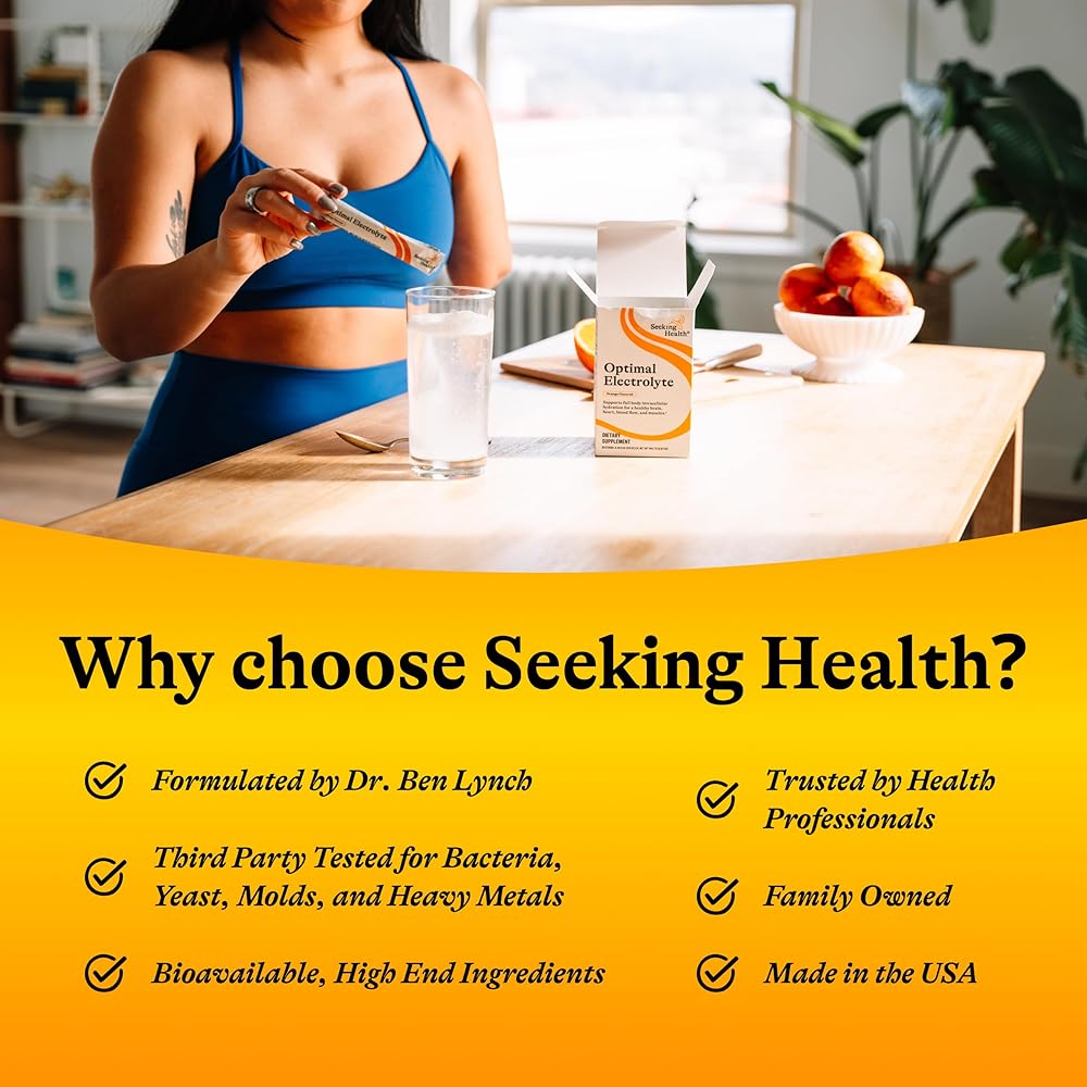 Optimize your health and build a strong foundation with Seeking Health Optimal Electrolyte Powder. This powder supplement is soy-free and formulated with an optimal electrolyte blend to support all-day hydration and energy.*Our energy supplement is packed with high-quality ingredients, including sodium and potassium. These essential electrolytes support hydration and water balance within cells. We also include creatine, which indirectly supports optimal methylation in your body and supports cellular energy in the brain for supported memory and clarity.*Magnesium, a crucial electrolyte, is also included in our blend. To ensure optimal absorption of magnesium, we've added taurine, which also supports healthy perspiration.*At Seeking Health, we believe there is a fundamental step missing in today's healthcare system. A consistent focus on treating symptoms, rather than building health, can mean that you cycle in and out of symptoms and “treatment” over and over. The root cause for many health conditions and symptoms stems from ineffective digestion and poor diet, along with other issues like environmental exposures, sleep issues and even a lack of community.If you support your body's built-in systems, especially digestion, with pure, highly absorbable, well-formulated nutrients, your ability to remain healthy rises. We want your foundation rock-solid, and we provide the tools to help you make it so.