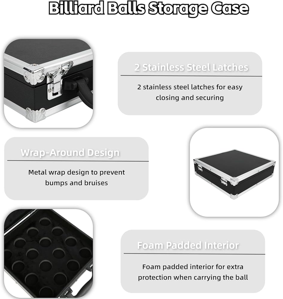 【LIGHTWEIGHT AND PORTABLE】The stylish billiard pool balls carrying case is lightweight and portable, with carrying handle, easy to carry. woderful accessory for billiard player.