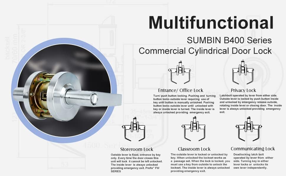 🔑COLOR & SIZING: Our commercial door locks are offered in Satin chrome finish (26D finish). Designed for 1-3/8" to 1-3/4" (35mm to 44mm) doors, they fit 1-1/2" to 2" thick doors