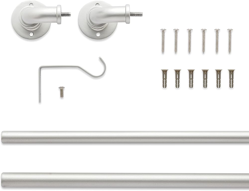 Easy To Install: Our window curtains rod set includes 1 telescoping curtain rod, 2 mounting brackets, one center support, screws, drywall anchors, and installation instructions. Available in brushed nickel curtain rod or matte black curtain rod finishes