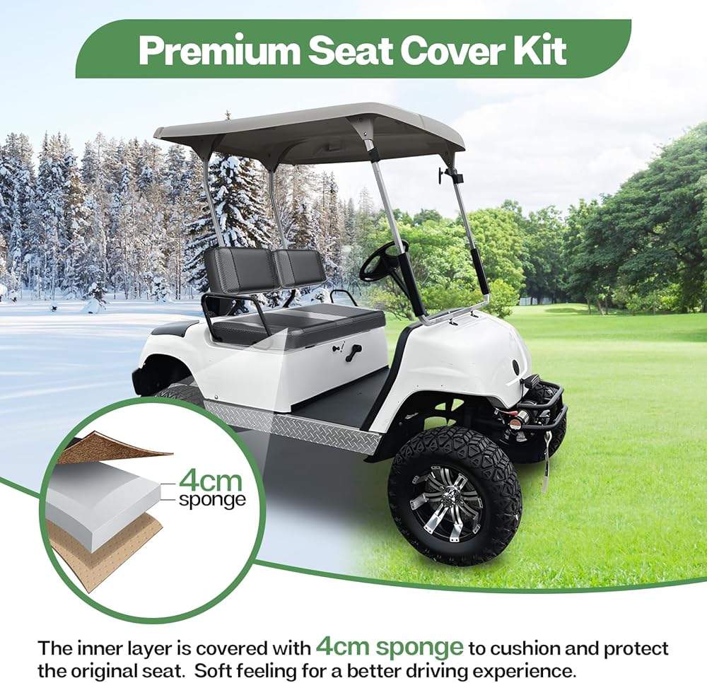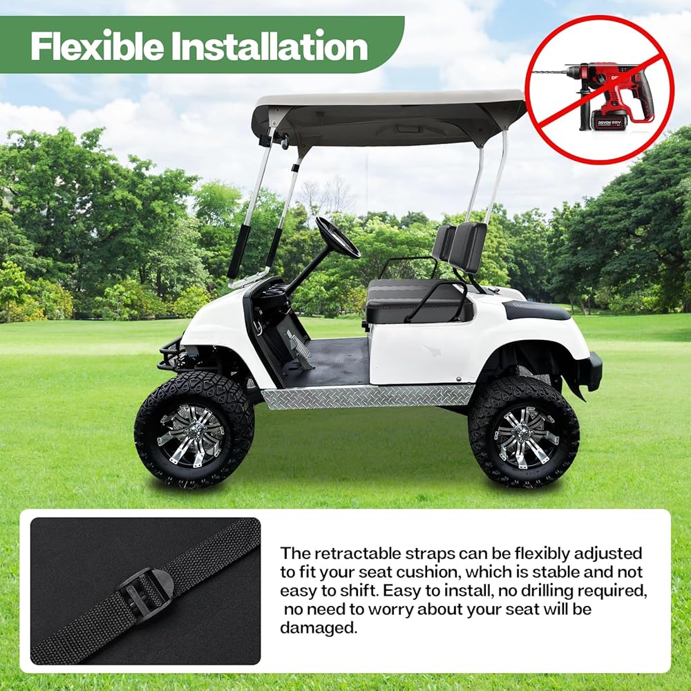 【Excellent After-sales Service】If you have any problems, please let us know ASAP so we can help you solve them. Tips: The Golf Cart Seat Cover is folded for shipping,unfold it and it will straighten out naturally.