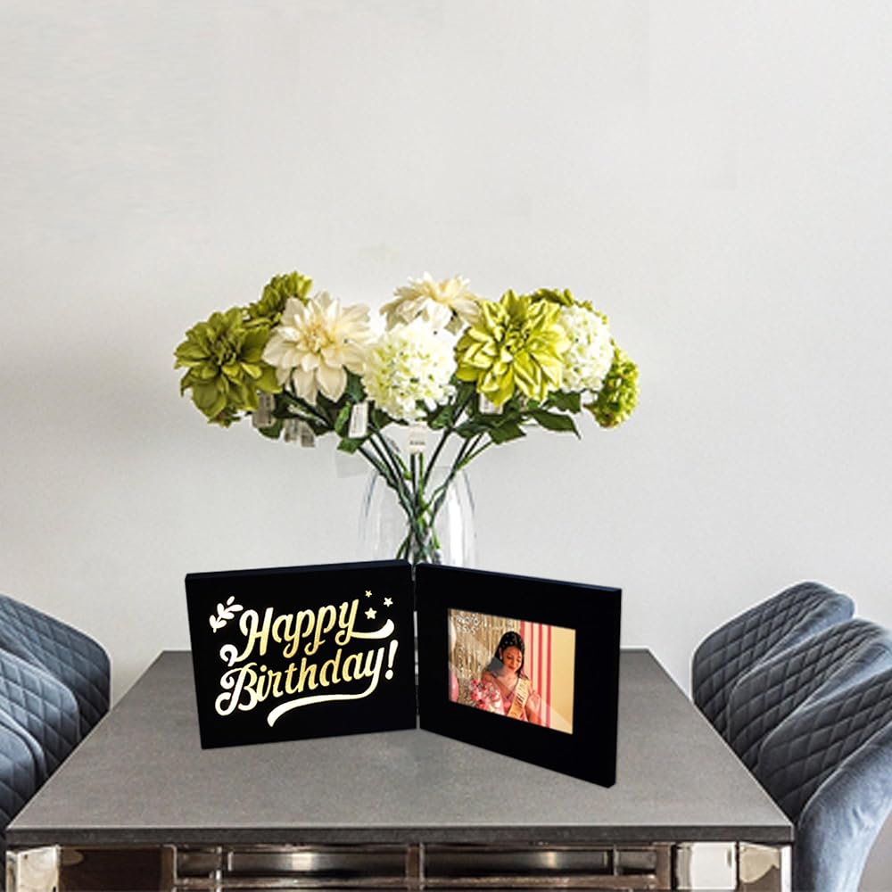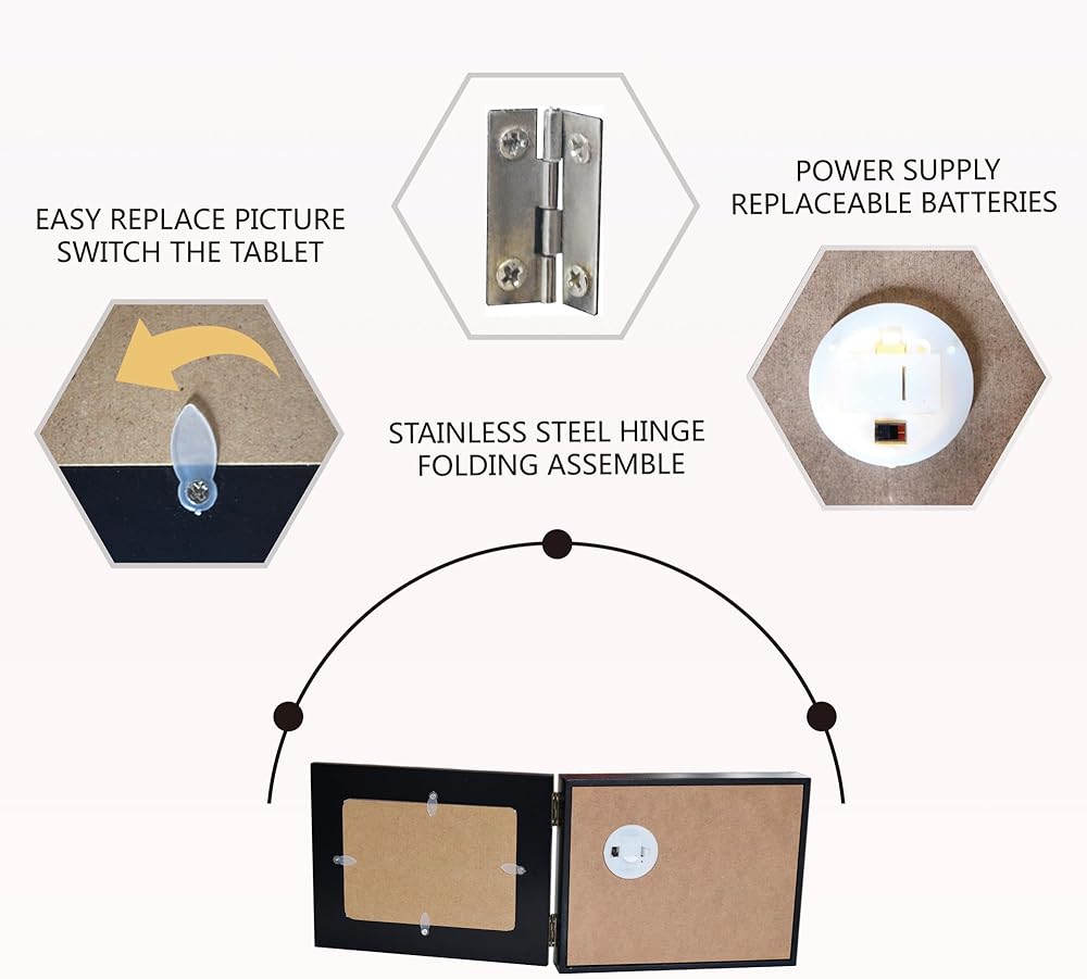 【EASY TO USE】: Under high-grade solid wood and paint process,this picture frame measures 11 by 7 inches when unfolded . It appears with beautiful engraving quotes on the left side,when light up. While you can insert a photo of related theme by 3.5x5 inches on the right.