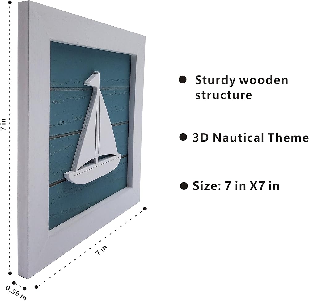 Nautical Theme Wall Decor Set of 3 7x7 in Rustic Beach Decor 3D Anchor Sailboat and Ship Wheel Wooden Beach Bathroom Decor Ocean Coastal Theme Decor for Lake House Home Room Nautical Gifts