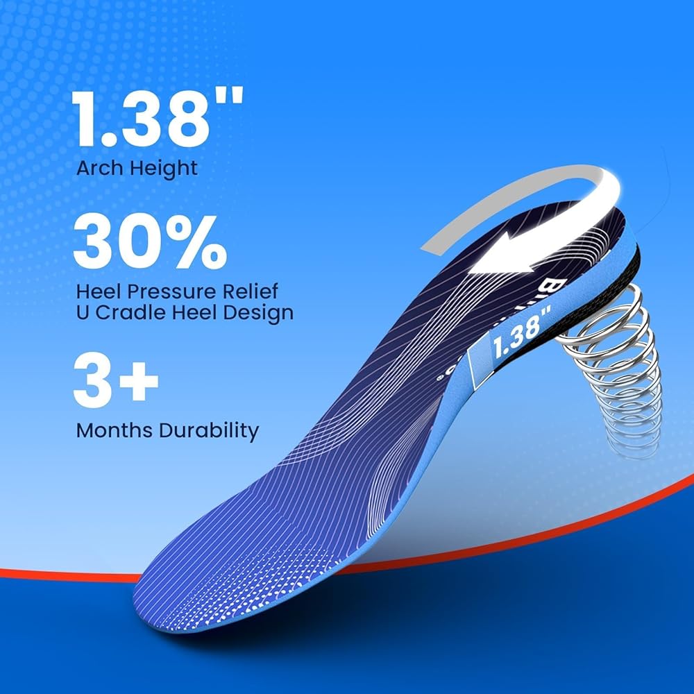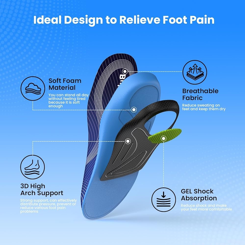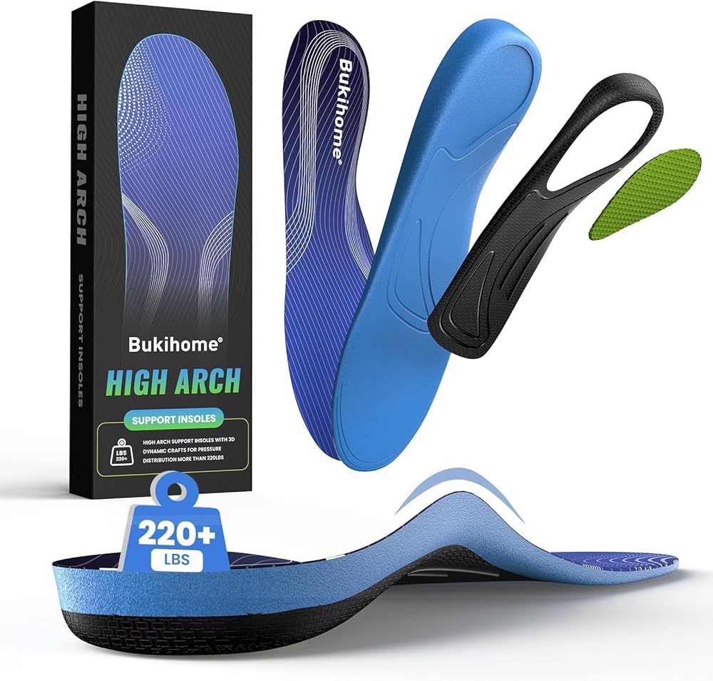 High Arch Support Inserts for Plantar Fasciitis -Bukihome Flat Feet Insoles for Men & Women, 220 lbs Heavy Duty Orthotic Shoe Inserts for Standing, Walking,Working-Size M