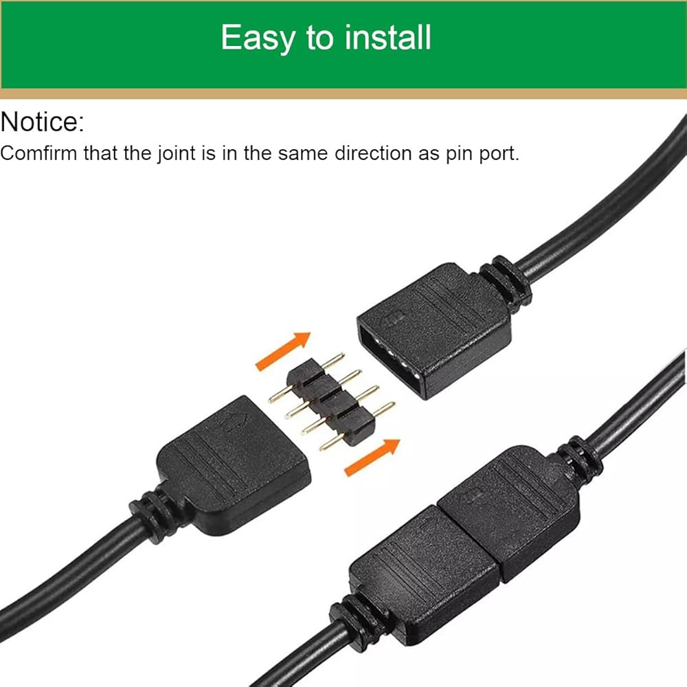 • Easy to install: The RGB extension cable comes with a 4-pin connector. No soldering, no tools required for installation, saves time. Ensure arrow-to-arrow, plug and play.
