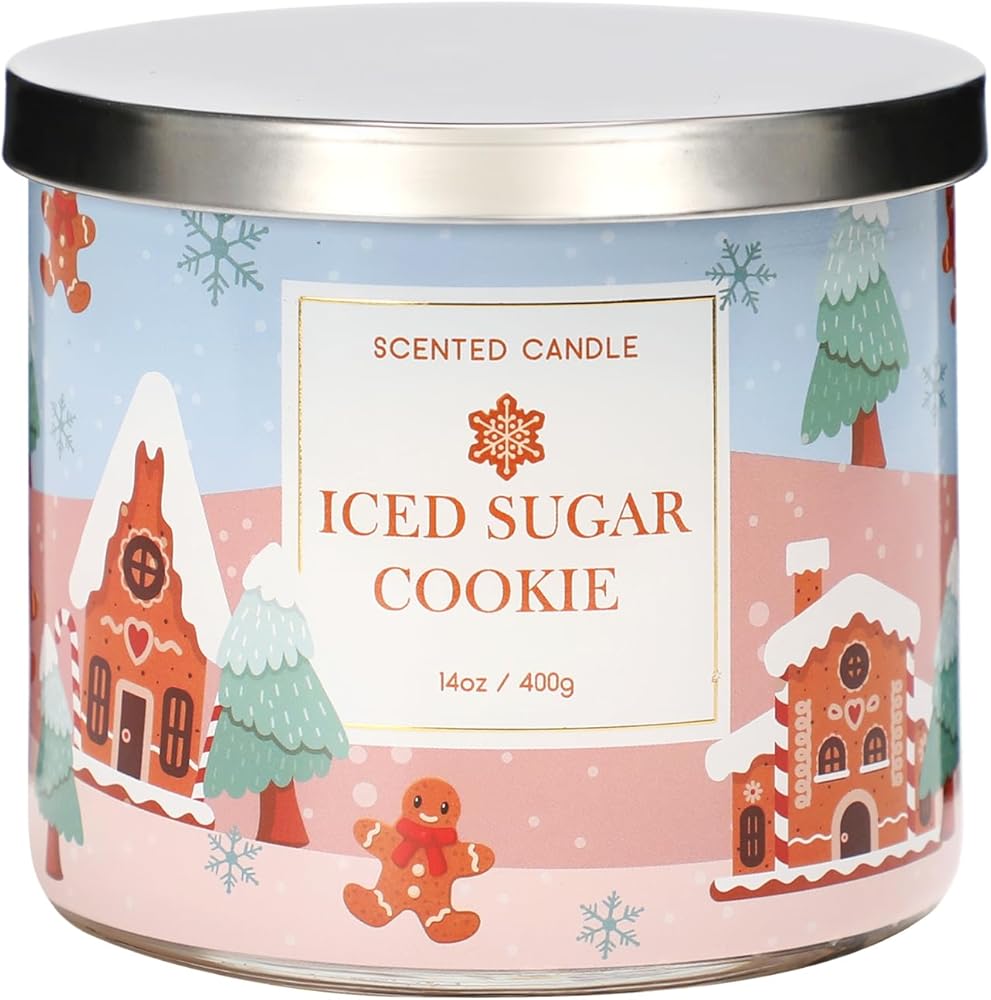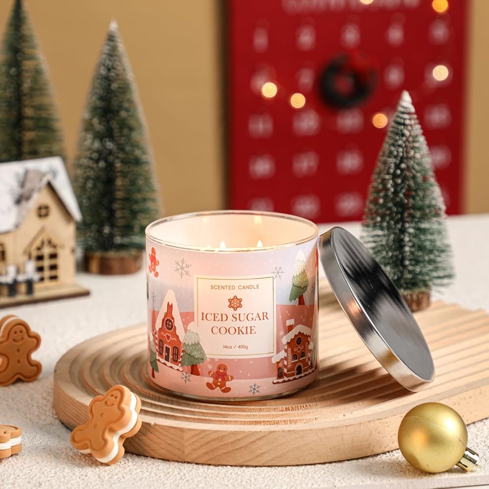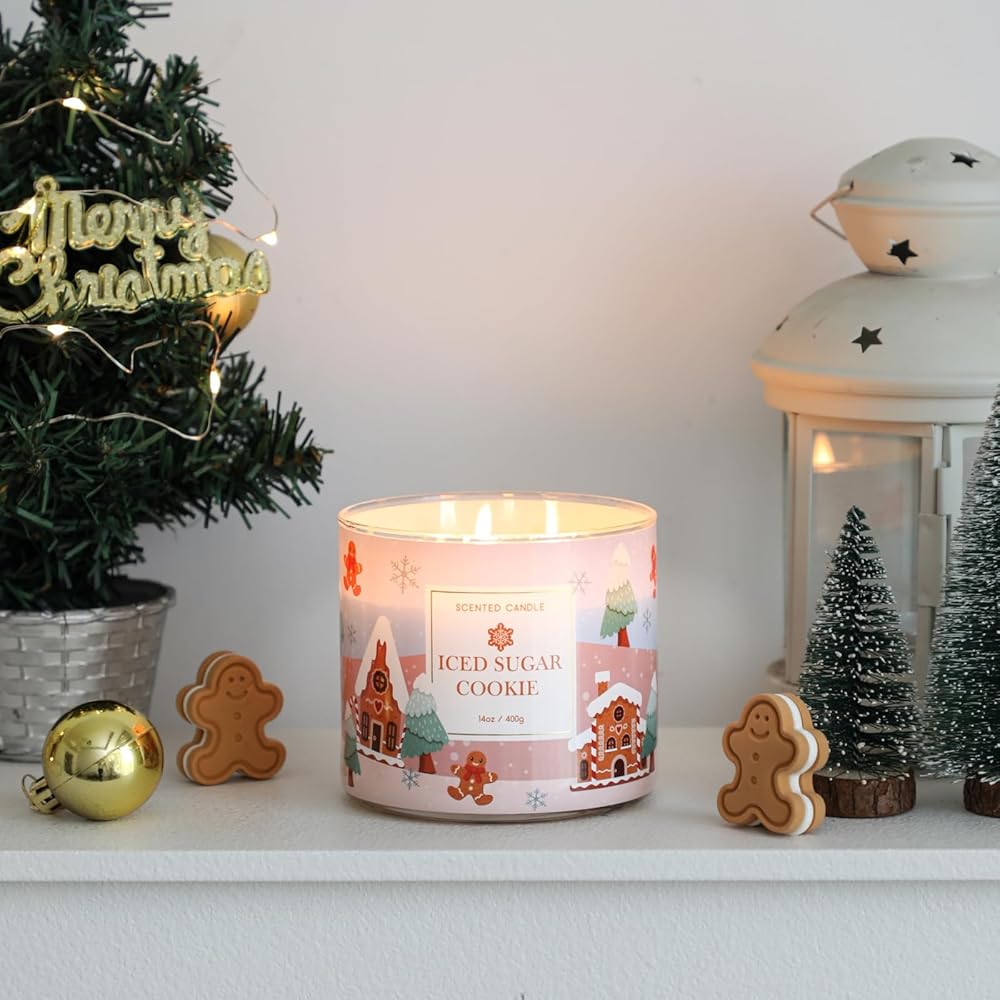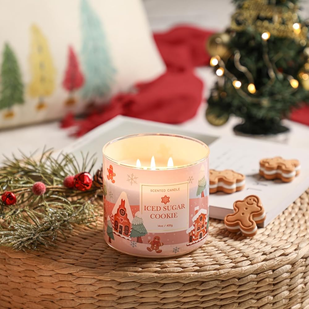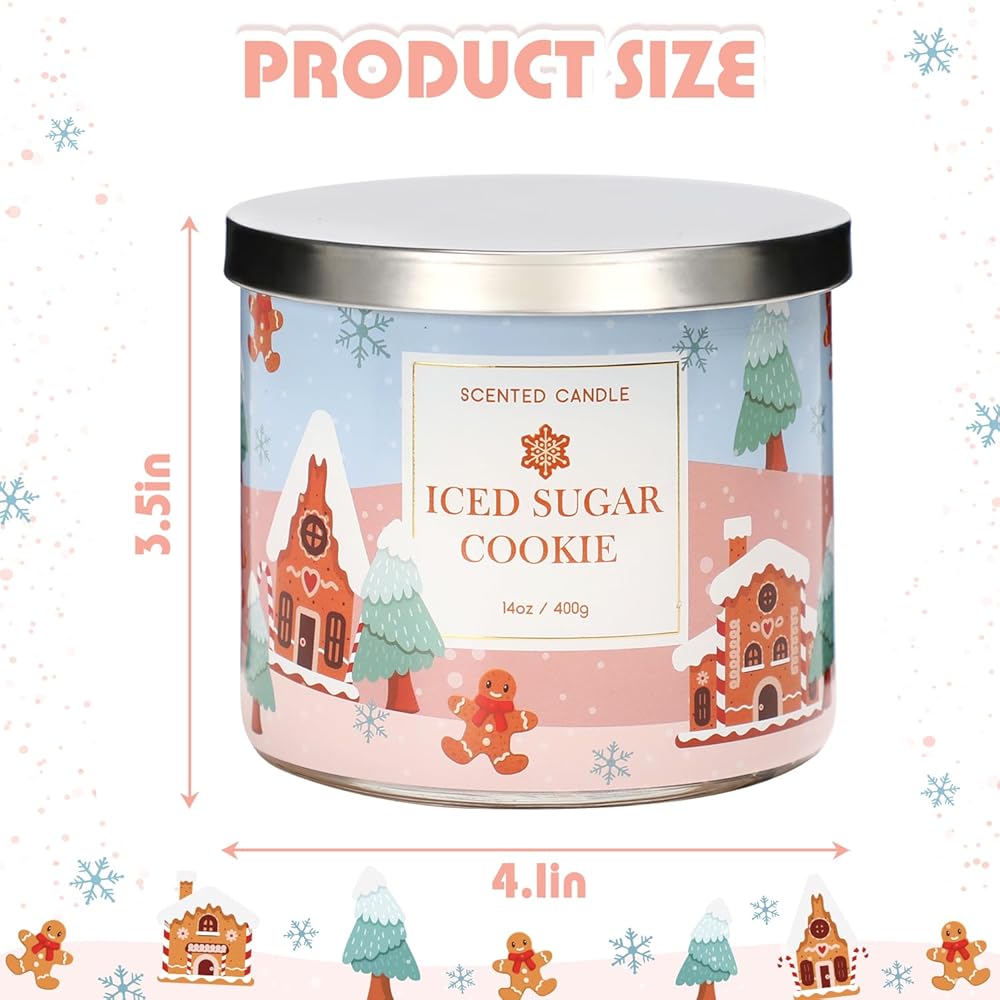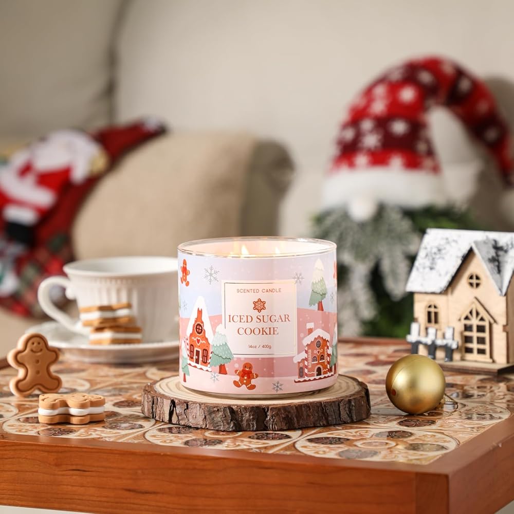【Highly Scented】 This delightful Christmas scented candle is crafted with a blend of sugar cookie and vanilla buttercream fragrances, it evokes the warmth and coziness of the holiday season.