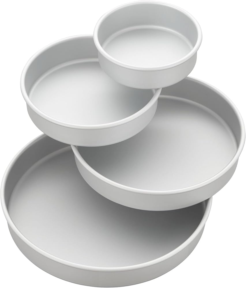 Wilton Aluminum Round Cake Pan Set, 4-Piece for Layered Cakes,Durable, Even Heating, Rust-Resistant, Professional Bakeware, 8, 10, 12 in., Package May Vary