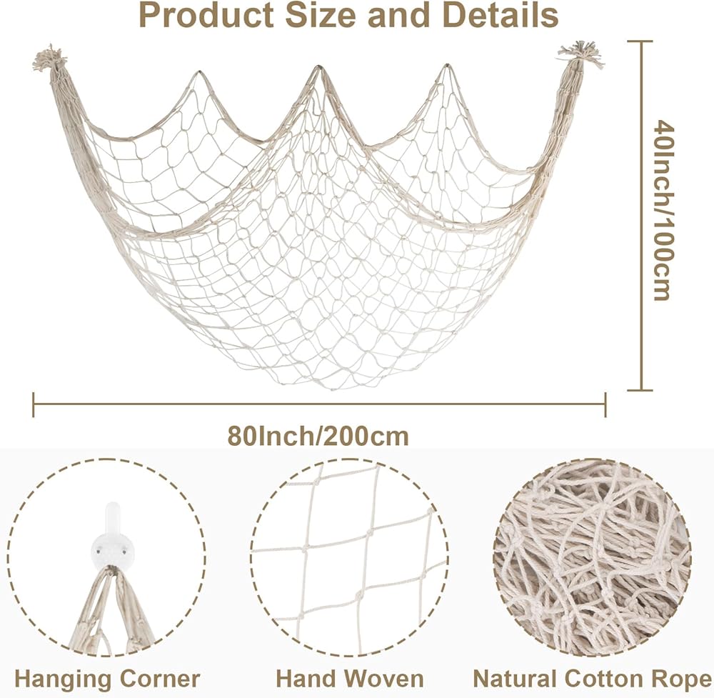 Decoractive & Versatile Function: Thanks to its large size and top-notch quality, the picture fish net can be also double as storage net hammock for organizing stuffed animals, toys, basketball, ballon, clothes and other lightweight stuffes. Plus, it is a perfect gift for your family or friends who looks for adding decor to any Nautical theme.