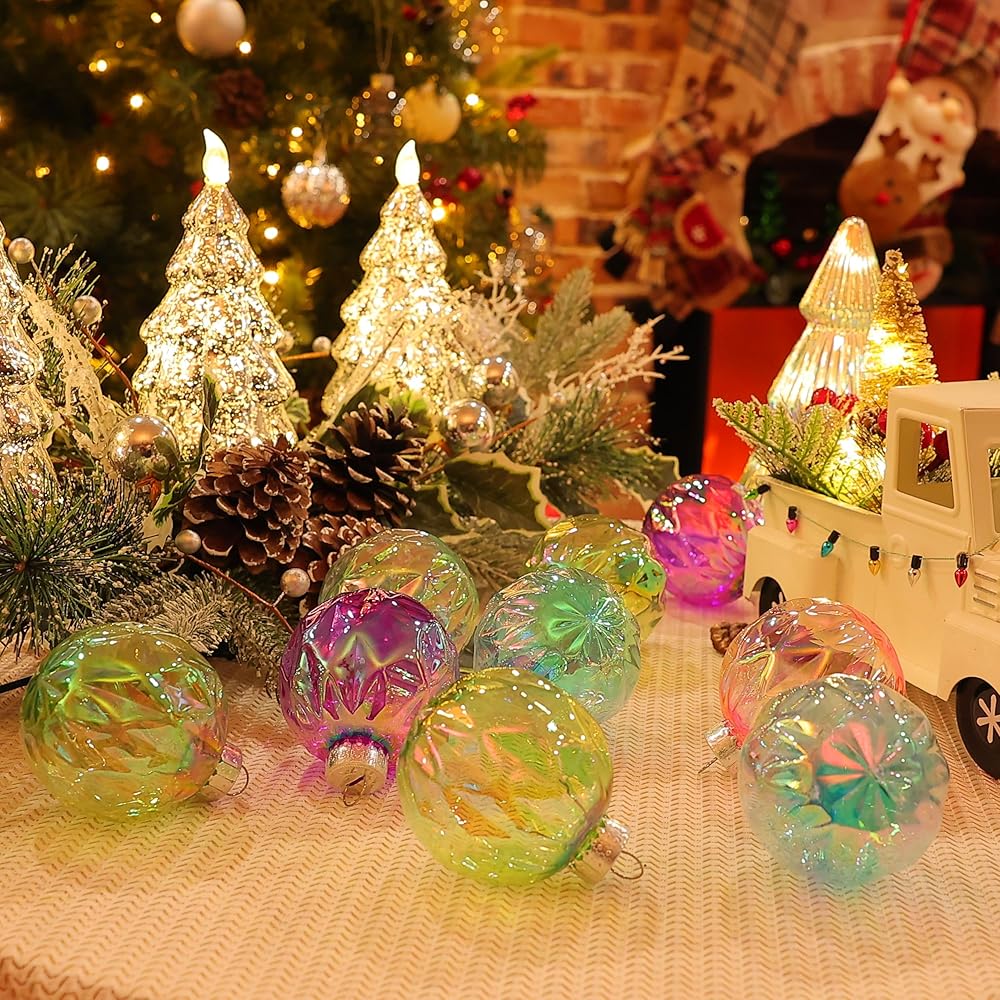 5.Use and store : These Christmas ball ornaments are very light weight .It's easy to hang on the tree and take down all the balls.Easy to store after use with the original box.