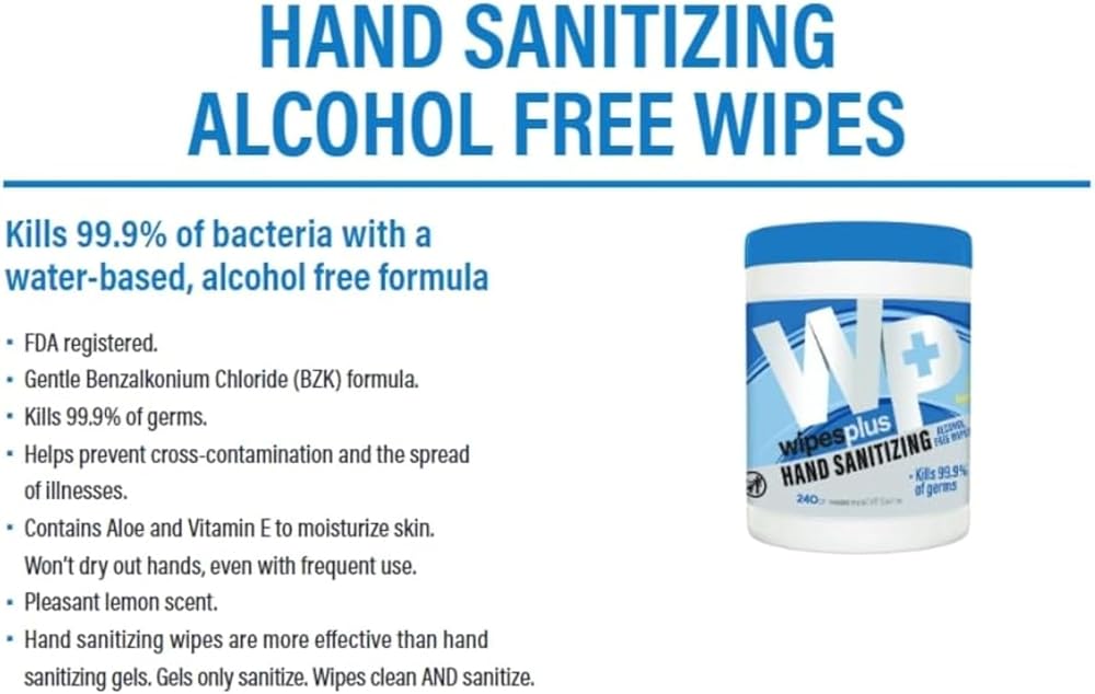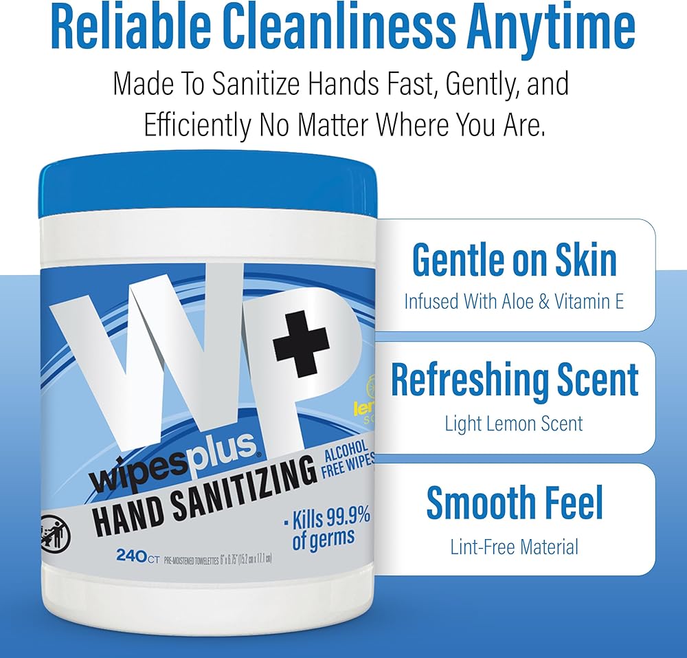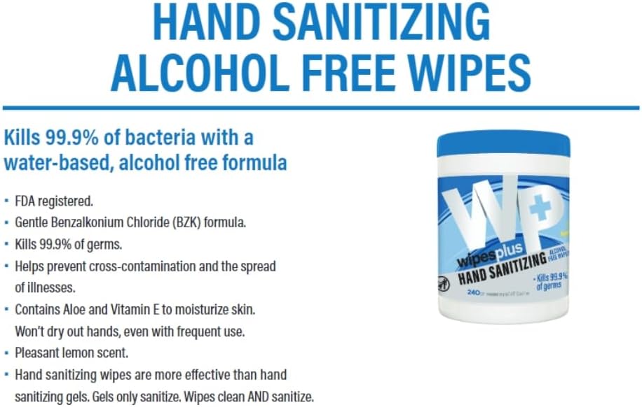 Enhance your hand hygiene practices with these WIPESPLUS Hand Sanitizing Wipes Refill Bags, a bulk solution designed for high-traffic environments like restaurants and retail spaces. Each refill bag contains 800 alcohol-free wipes, each meticulously formulated to kill 99.9% of germs, ensuring effective hand sanitation and protection against harmful pathogens. Our water-based formula is alcohol-free, making it a gentle yet powerful option for frequent use. It's specifically crafted to be kind on sensitive skin while still delivering robust sanitization. These wipes are more effective than traditional hand sanitizing gels, as they not only sanitize but also clean hands thoroughly, providing a comprehensive solution to hand hygiene. Infused with Aloe Vera, the wipes help to moisturize and soothe the skin, preventing dryness and irritation often associated with frequent hand sanitizing. The pleasant scent adds a refreshing touch to your hand hygiene routine. Designed to be lint-free and non-abrasive, these wipes offer a gentle touch, making them perfect for continuous use in busy environments.. Proudly made in the USA, these wipes combine high-quality performance with exceptional convenience (Model Number: 37302).