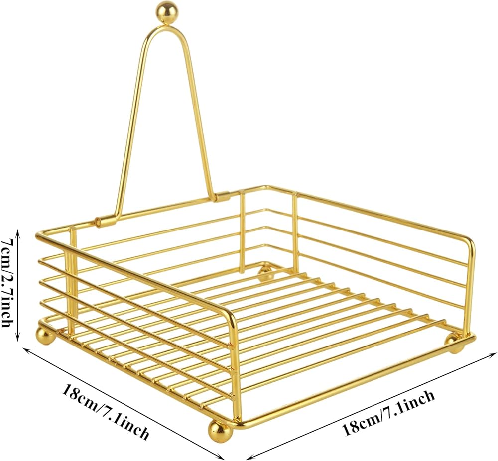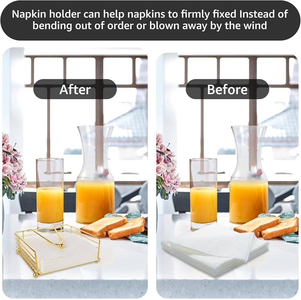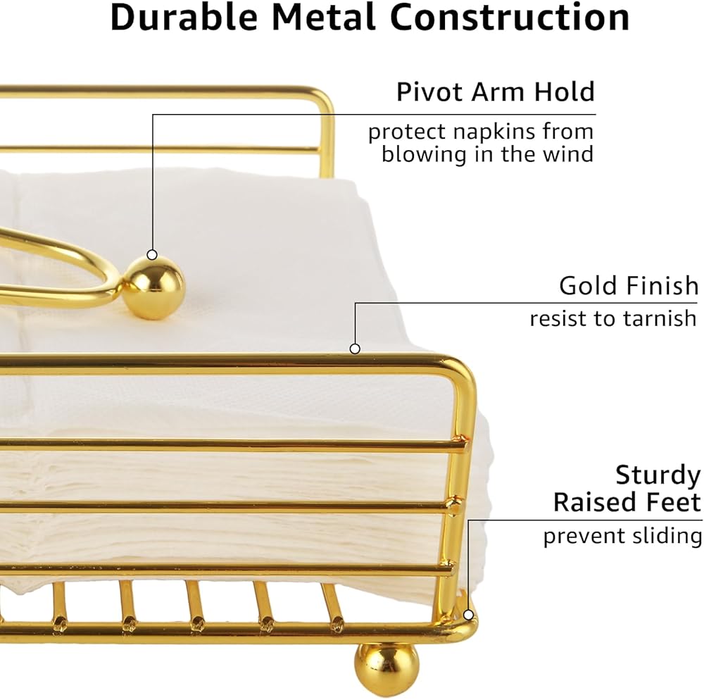 FVIEXE 3PCS Napkin Holders for Paper Napkins, Modern Flat Napkin Holder Square Paper Napkins Holders with Weighted Arm for Kitchen Tables, Gold Metal Napkin Dispenser for Restaurant, Farmhouse, Dinner, Outdoor